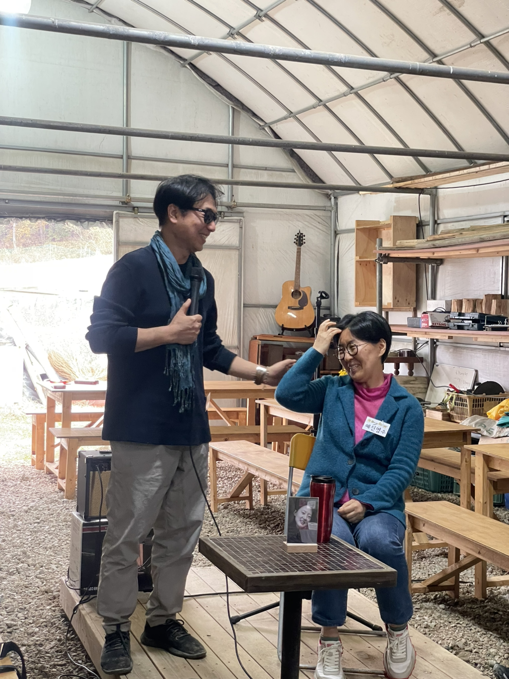 소뿔농장 나들이는 농장의 맛에 푹 빠지는 것 외에 서로의 이야기에 귀 기울이는 시간이다. 탁월한 혜신쌤이 이끌어주는 공감 마당이다. 마법의 마이크를 잡기만 하면 다들 차례로 사는 얘기를 털어놓는다.