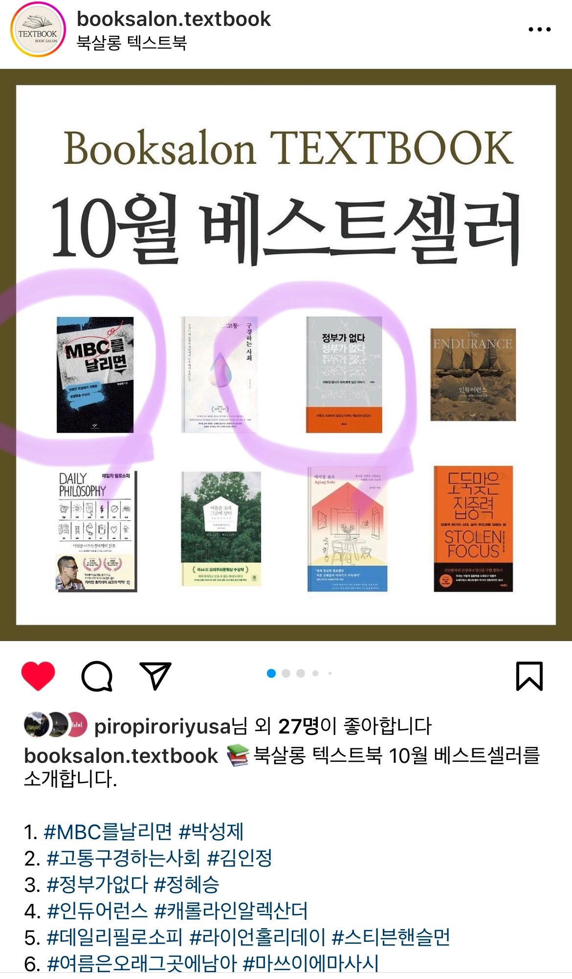 내 책은 10월29일부터 오프라인 서점에 깔렸다. 근데 10월 베셀에 들어갔다니 #북살롱텍스트북 뭐하는 서점인가.