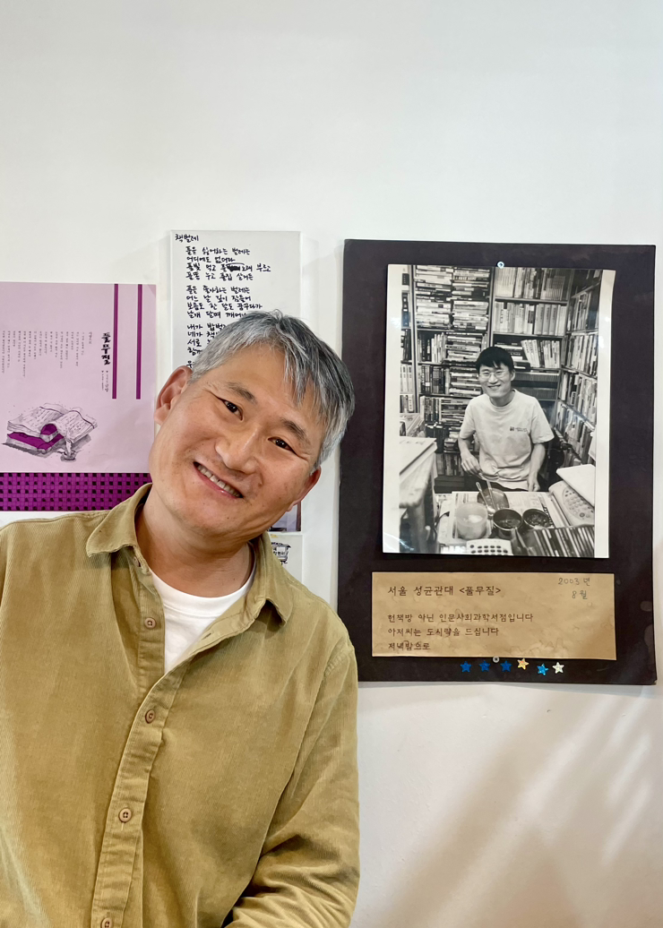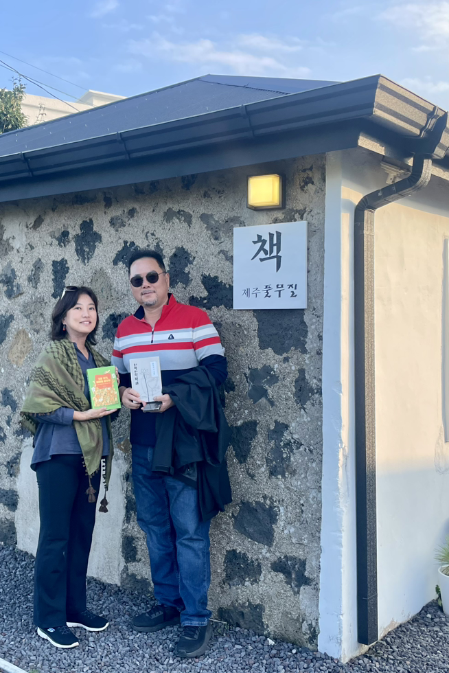 사장님은 4.3 등 제주를 알리고 싶은 제주 책들, 병풍처럼 오래 서가를 지키는 인문사회과학 책들, 그리고 매출을 담당하는 소설과 에세이 등 세가지 종류의 큐레이션을 갖췄다. 매달 하시는 독서모임이 일곱 팀이라는데 정말 더불어 책! 친절한 사장님에게 넘어 가서 우리 부부도 작가라고 고백하고 #MBC를날리면, #정부가없다 입고하기로ㅎ 서점 배경으로 사진도 여럿 찍어주셨다.