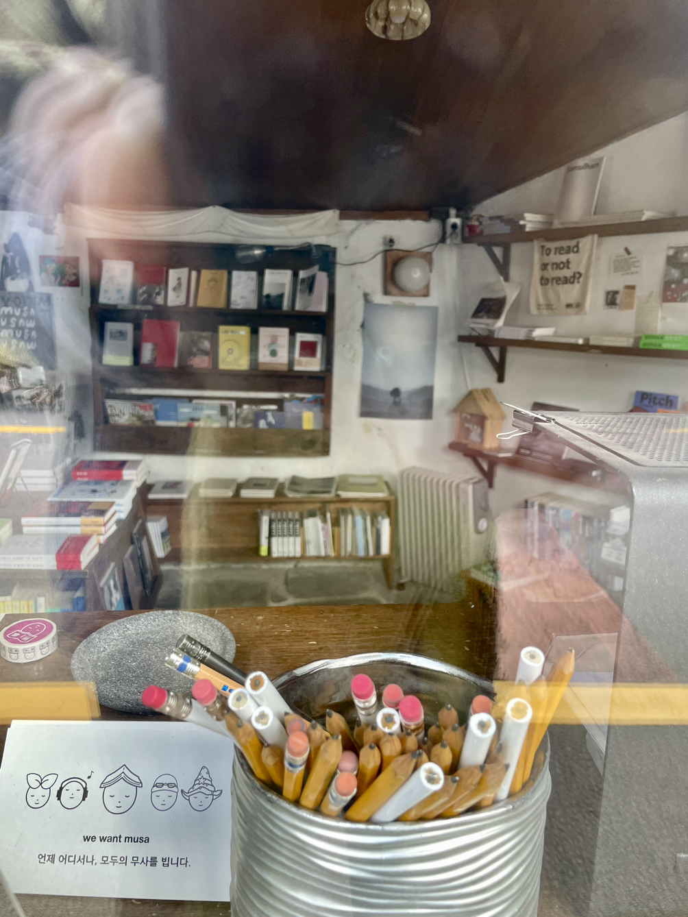 그런데 혹시나 요조님 만날까 기대에 부풀었던 #책방무사 화수 휴무였다. 아뿔싸. 다른 서점은 휴무 확인했는데, 여기만 요조님 생각하다 깜빡ㅠ 귀엽고 아늑한 공간이었구나 밖에서 훔쳐보고 아쉽아쉽.