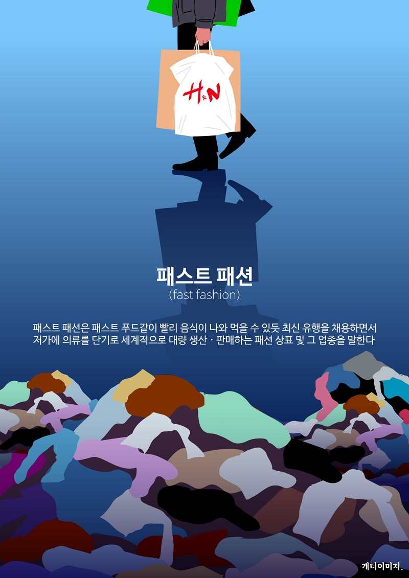 패스트 패션. 빨리빨리 디자인 기획하고(베끼고) 생산해서 내놓는 옷들이 너무 많이 팔린다. 자라, H&M, 유니클로, 다 그런 종류다. 전 세계에서 매일 최소 2억 벌의 새 옷이 나온단다. 2000년 이후 옷 생산량이 2배 이상 늘었다. 패스트 패션보다 더 빠른 ‘울트라 패스트 패션’도 등장했는데, 자라가 일주일에 두 번 신제품을 내놓을 때 영국 아소스(ASos)는 매주 4500개 신제품을 선보인다. 중국 쉬인(Shein)은 2021년 하반기에만 1만 개 디자인을 새로 내놓았다. 한국에서도 패스트 패션 시장은 2007년 3000억 원에서 2017년 약 3조2000억 원으로 10배 이상 커졌다.