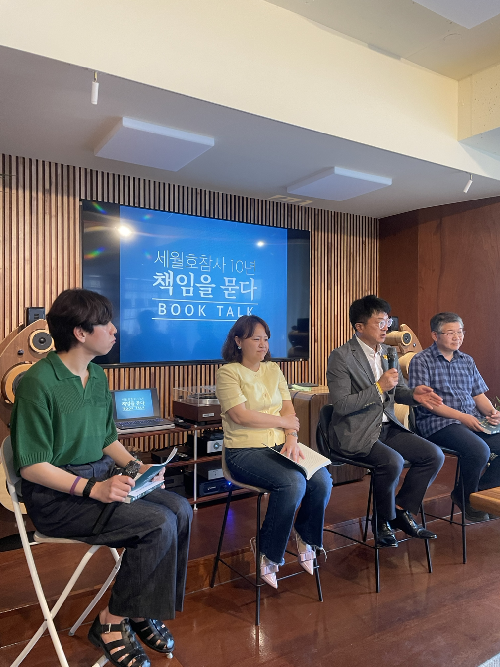 세월호 참사 이후 10년을 기록한 <책임을 묻다> 북토크가 7일 오티움에서 열렸습니다. 공동저자인 준형아빠 장훈님, 오지원, 이정일 변호사님 말씀 중 결정적 몇 장면을 복기해봅니다.
