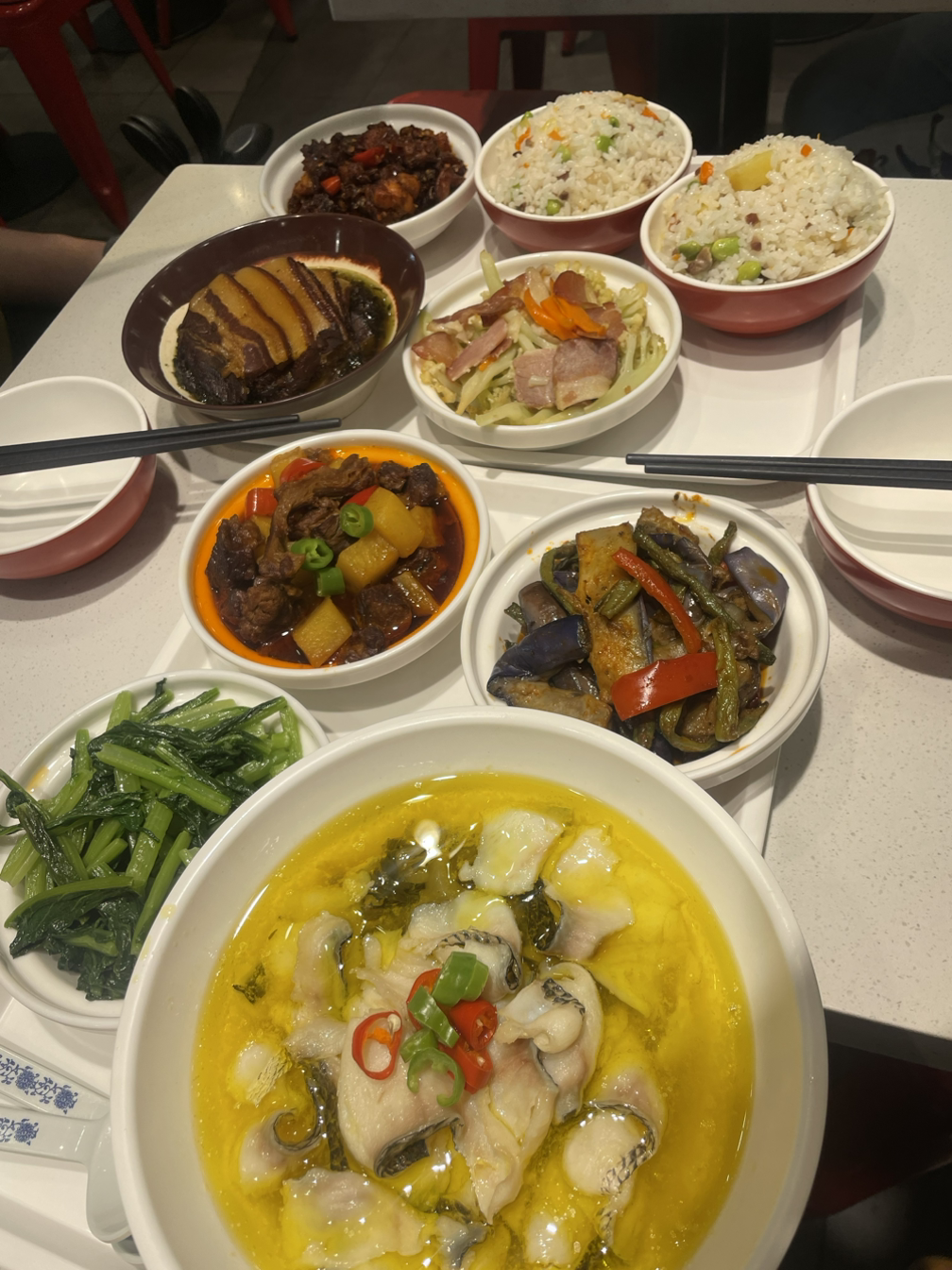 - 공항 카페테리아에서 이것저것 골라 점심. 산채어(시큼 채소 생선)는 짜사이를 볶다가 생선과 끓인 것 같은데 묘하게 맛있다. 삼겹살찜 아래 다진 시래기 비슷한게 수북한데 손이 가는 맛. 6명이 골고루 잘 먹고(인당 1만원)