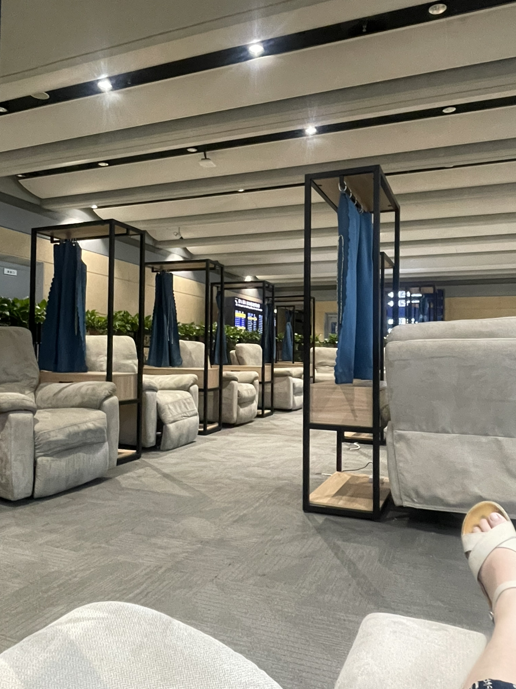 - 새벽 4시에 집에서 나와서 6시50분 비행기 탔다. 3시간도 못잤지만 뱅기에서 자고, 쿤밍공항 트랜스퍼 라운지의 리클라이너 끝내준다. 푹 쉬다가 국수로 간식. 매콤한 곱창국수와 우육면. 아까 그 시래기 비슷한 짠지를 넣어 먹으니 또 끄덕끄덕. 옆 사람은 간장 비슷한 것도 넣어 먹네?