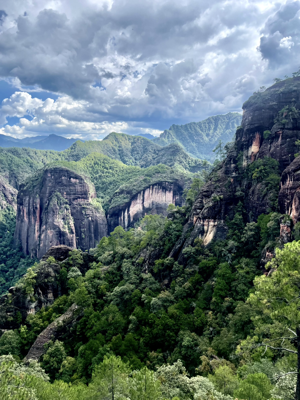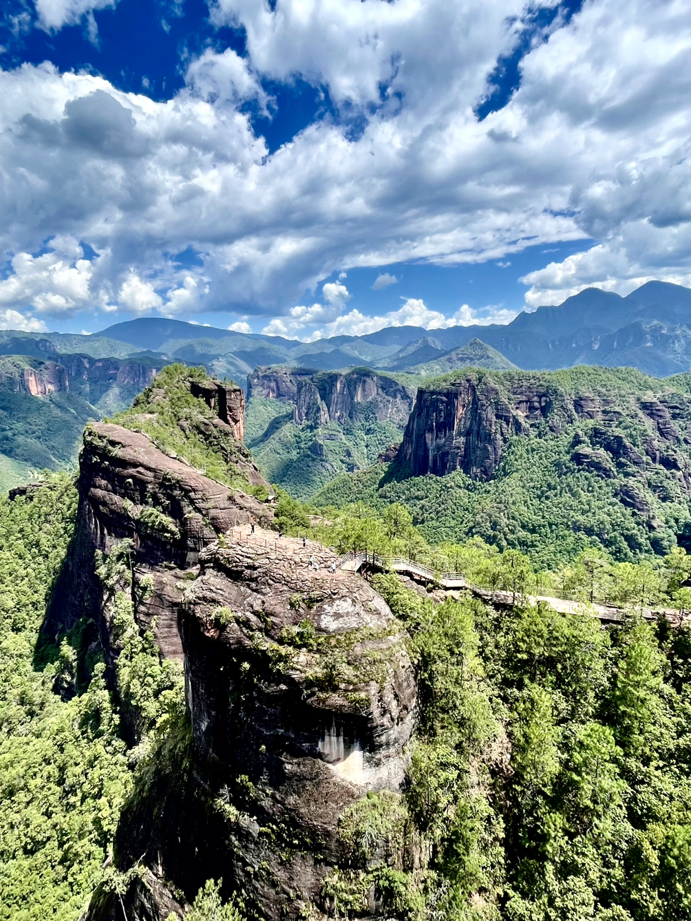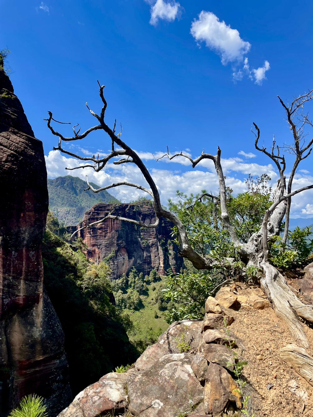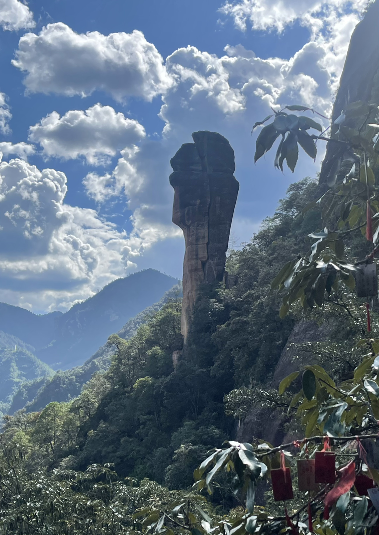 저 암벽을 수직으로 뛰어오르는 경공의 고수가 끝내 무공비급을 찾았을까? 조금 외진 곳이라 그런지 관광객이 거의 없는 산에서 온갖 상상을 다해본다. 오는 길에 구름을 걸친 산자락들에 감탄했지만 다 잊어버렸다. 차마고도와 또 차원이 다른 비경이다.
