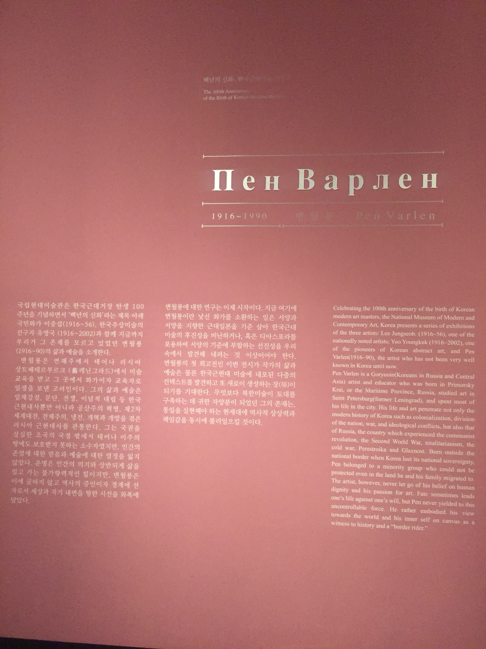 러시아어 B는 영어 F처럼 윗 이빨로 아랫 입술을 긁는다. 붸.. 혹은 웨..에 가까운 발음. 뼨 왈롄 이라는 이름을 지켰던 고려인. 당대의 화가. 1916년 연해주에서 태어나 상트페테르부르그에서 공부했다. (개인적으로 미술관의 매혹에 흠뻑 빠졌던 첫 경험이 상트페테르부르그의 에르미타쥐 박물관.. 저 도시가 그리 간단한 곳이 아니다. 러시아란 나라가 문학, 음악 뿐 아니라 미술에도 깊이가 어마어마하지..)