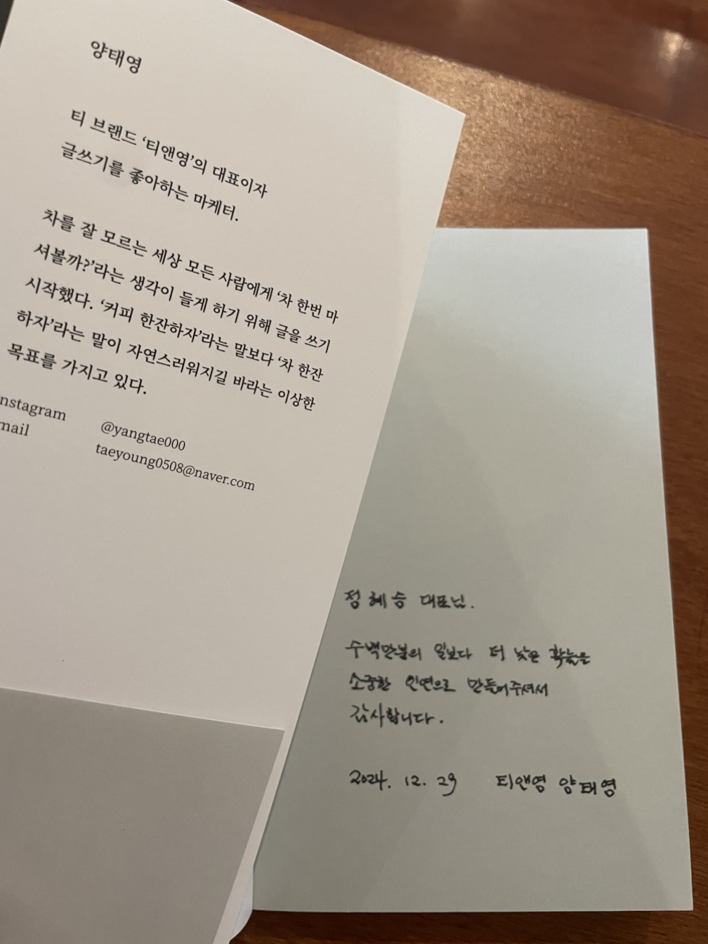 북살롱 오티움의 위스티와 애플힙 티백을 납품해주는 티앤영 양태영 대표가 12월31일 저 없는 사이 책과 메모를 남기고 갔어요. 우리가 어떻게 만날 수 있었을까요. 수백만분의 일보다 낮은 확률로요.