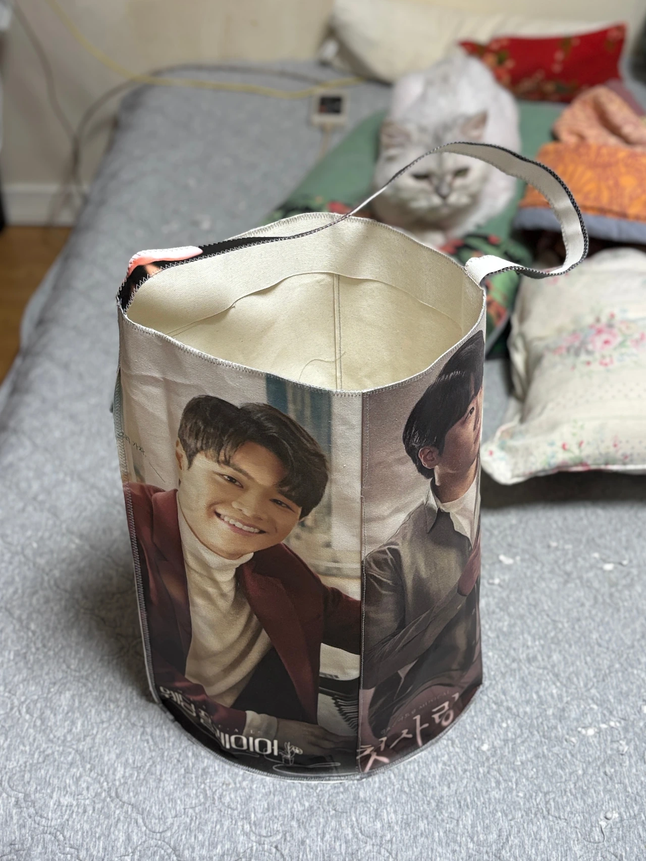 행사 때 쓴 현수막을 좋은 천으로 맞춰서 가방까지 제작하는 일을 오티움 화요일 매니저님께서 해주셨습니다. 시제품인데 놀랍네요.