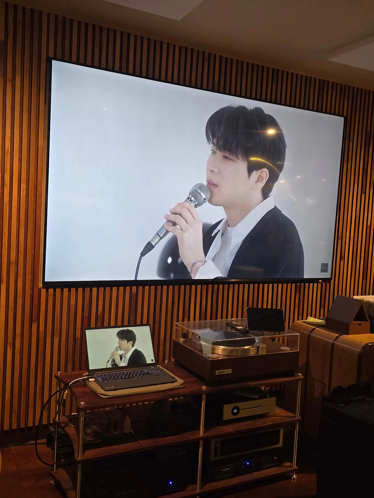 99인치 디스플레이 통해 응원하는 님의 얼굴과 공연을 원없이 볼 수 있는데 심지어 스피커는 쿠르베. 폰으로, 에어팟으로 듣거나 PC, 일반 TV로 듣던 것과 음질이 완전 다릅니다. 좋아하는 가수의 목소리가 부드럽게, 강렬하게 울리는 시간입니다.