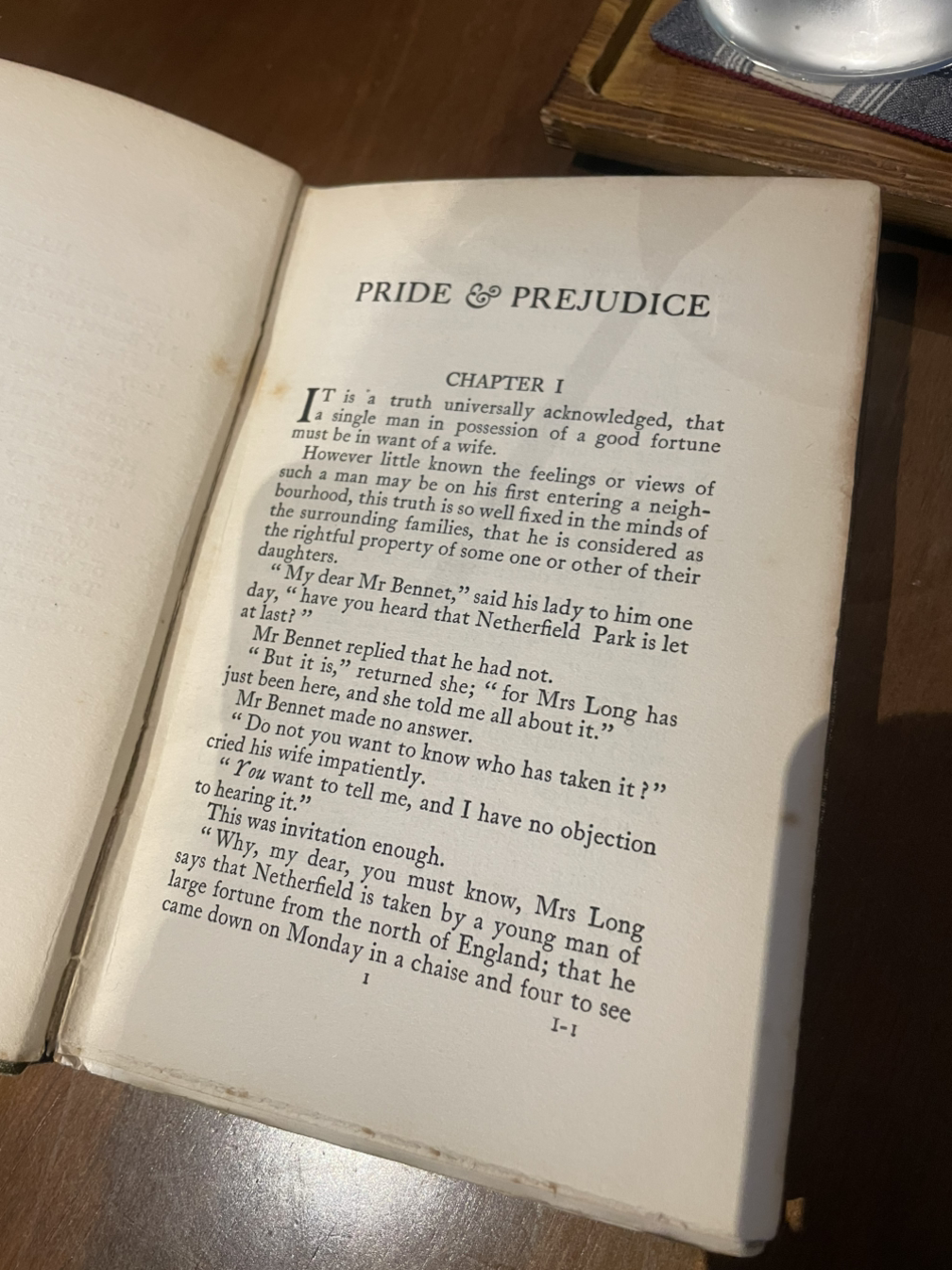 It is a truth universally acknowledged, that a single man in possession of a good forture must be in want of a wife.