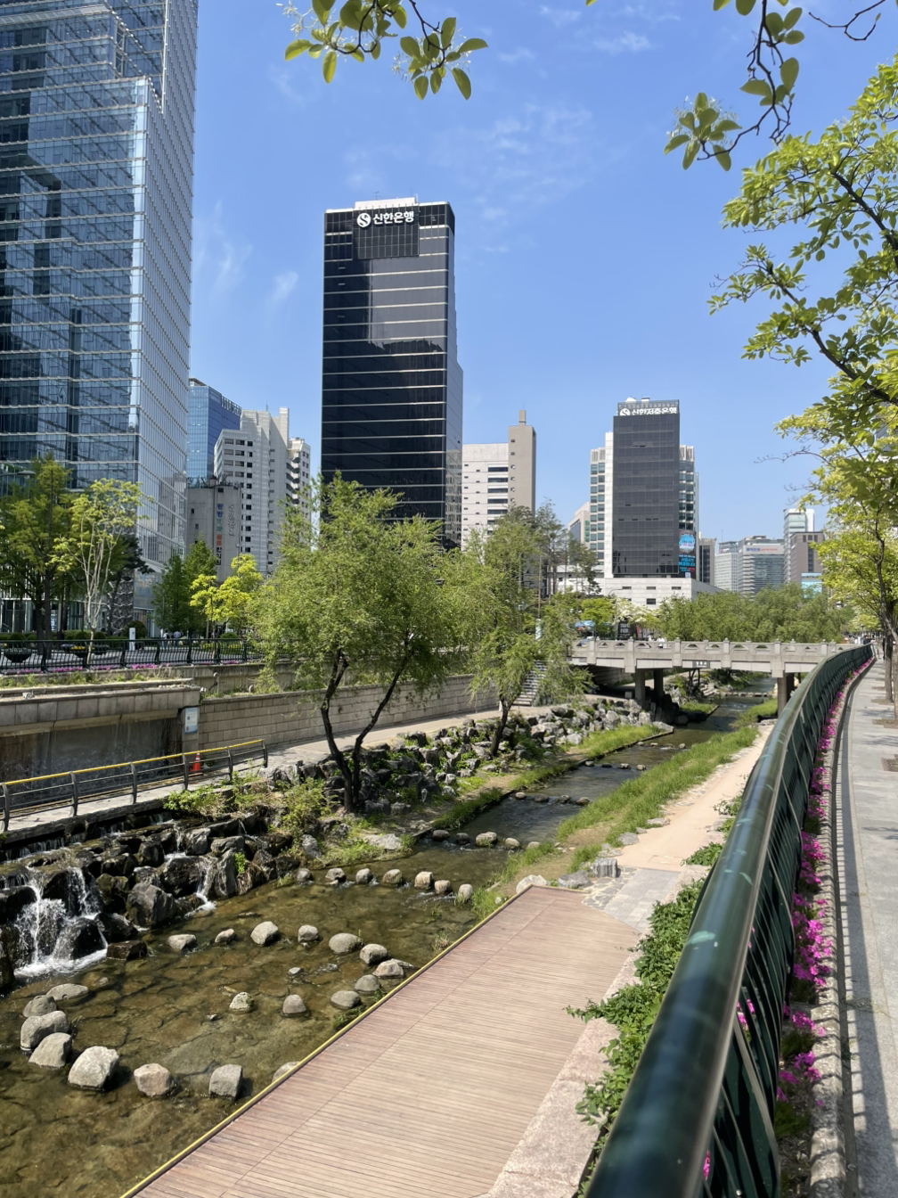 봄은 청계천에서 목격했다. 을지로입구 버스 정류장에 내려 오티움으로 걷다보면 청계천이다. 마음이 궂은 날에도 초록이 속살거리는 온기에 나른해진다. 뭐든 괜찮다는 생각이 문득 든다.