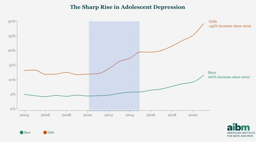 아이들의 정신건강은 2010년 이후 급격히 나빠졌다. 청소년의 불안과 우울증이 국제적으로 동시에 늘어났다. 미국에서는 2010년 이후 10대 우울증 발생 빈도가 2.5배로 증가했다. 모든 인종과 사회 계층에서 나타난 현상이다. 2020년 무렵 미국의 10대 여자아이 4명 중 1명은 우울증 에피소드를 경험했다. 이 시기 여자 청소년들의 자해 비율은 약 세 배 증가했다. 자살률은 167% 증가했다. 2023년 미국 대학생 상대 조사에서 37%는 “항상’ 또는 “대부분의 시간 동안” 불안을 느낀다고 답했다. 대체 무슨 일이 벌어진 건가?