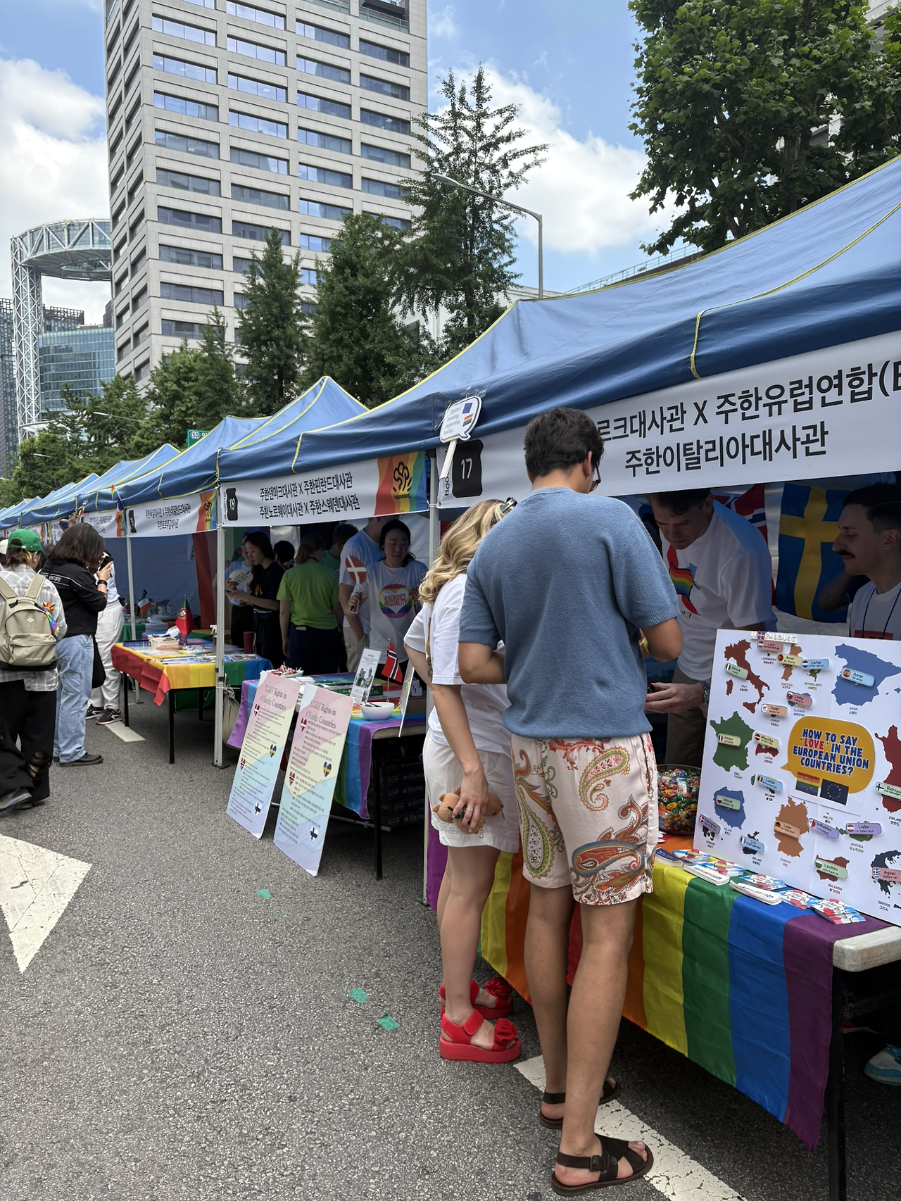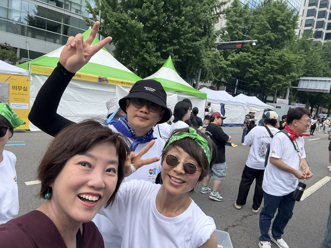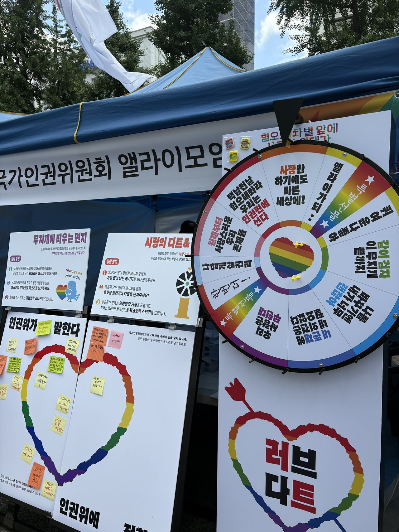 혐오 시위에 부스를 열라고 지시한 인권위 위원장. 그리고 퀴어축제 공식 부스를 허락하지 않자, 인권위 성소수자 연대 모임인 ’인권위 엘라이‘ 차원에서 더 흥겹고 신나게 판을 벌인 엘라이들. (참고로 앨라이는 만국의 lgbt들 모두에게 통용되는 말이랍니다^^)