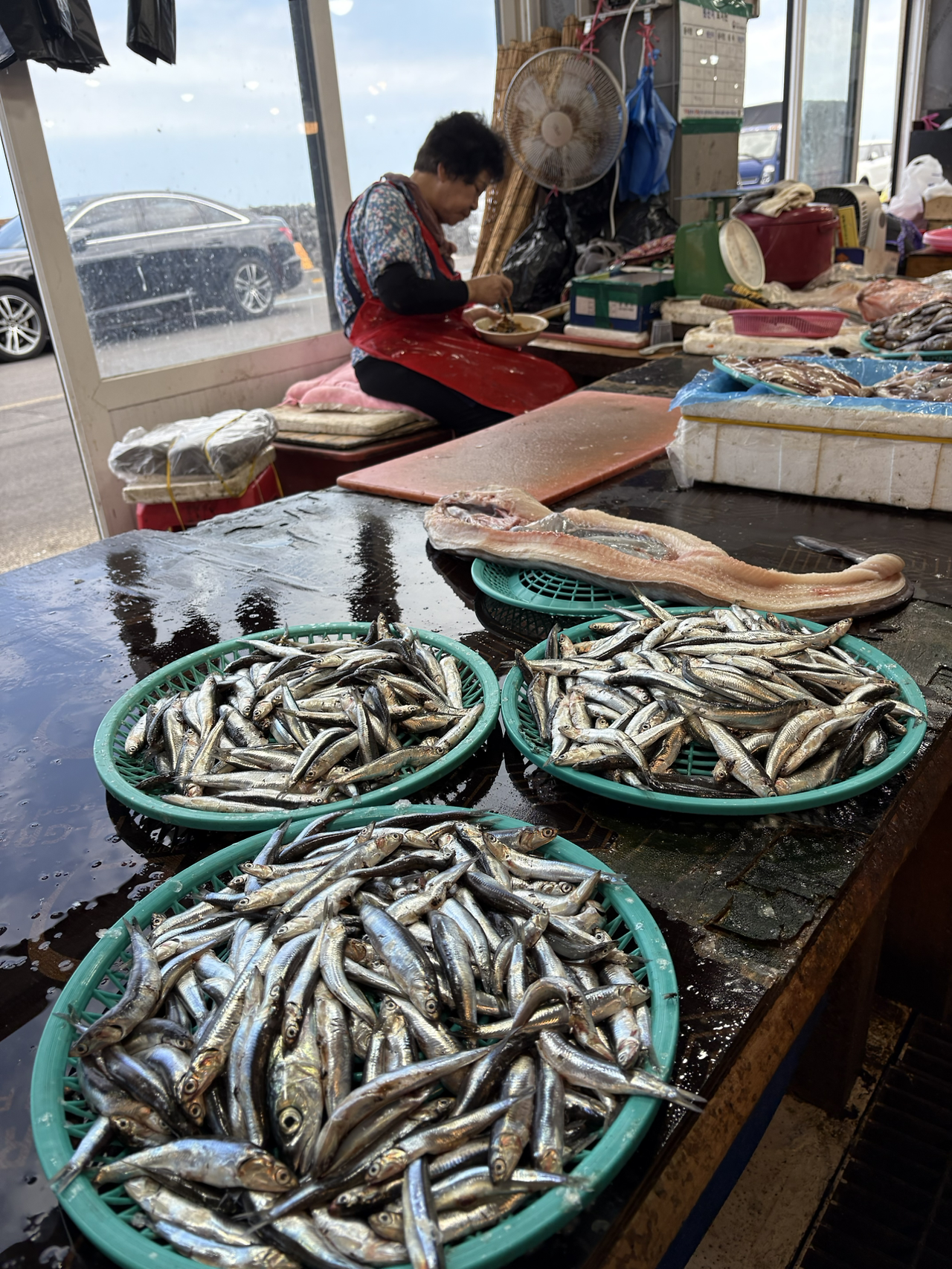 제주 둘째날, 밤새 달린 일행들 덕에 아침 거르고 산방탄산온천 후 동쪽으로. 평대리 아래 세화리의 세화민속오일장으로 갔다가 한치 손질은 안된다기에 바로 옆 섬나기라횟집. 어제보다 반찬 실하고 가격도 착하고. 메로지리도 강추.