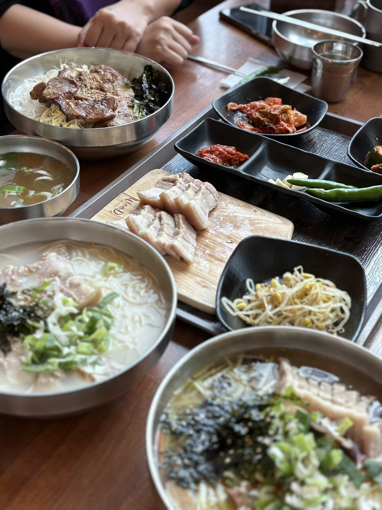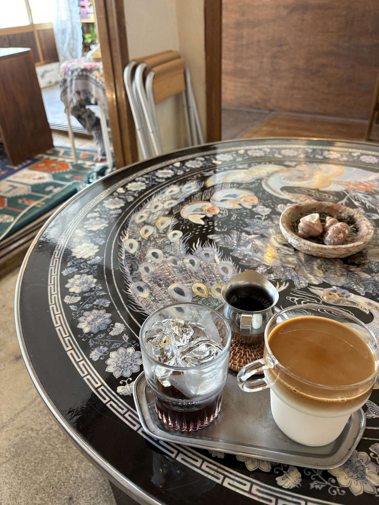 다시 6분 거리 #새물국수, 돔베고기(200g, 1.5만원)는 시키지 않았어야. 고기국수는 물론 멸고국수, 비빔국수에도 고기가 넘나 푸짐해서 셋이서 해치우는데 힘들었다. 바로 앞 화순별곡 레트로 감성에 커피 달달하고.