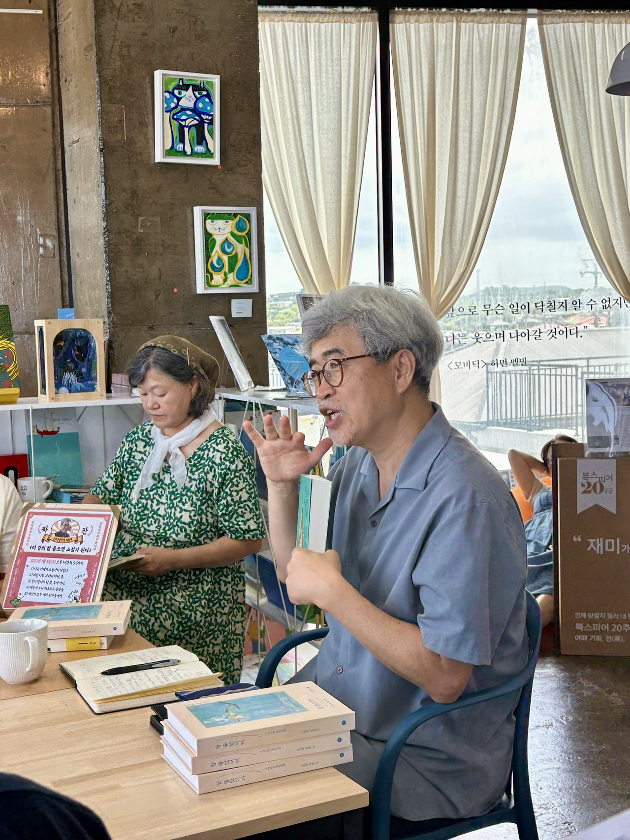 5일 오후 제주 동쪽 평대리의 일년서가에서 김탁환 작가님의 ’이 강의 잘 들으면 소설가 된다‘ 강연이 열렸다. 과연?? 오늘 말씀으로 소설가가 될 수 있을까? 그건 보장하지 않으셨지만 김 작가님은 글 못지 않게 말도 예쁜 분. 마침 제주에 놀러온 김에 일행들 이끌고 와버렸다. 산방산 숙소에서 동쪽 바닷가까지 1시간 40분 거리. 광활한 제주에서 그저 제주라는 이유로 반가워 먼 길 가는 건 서울 사람이다.