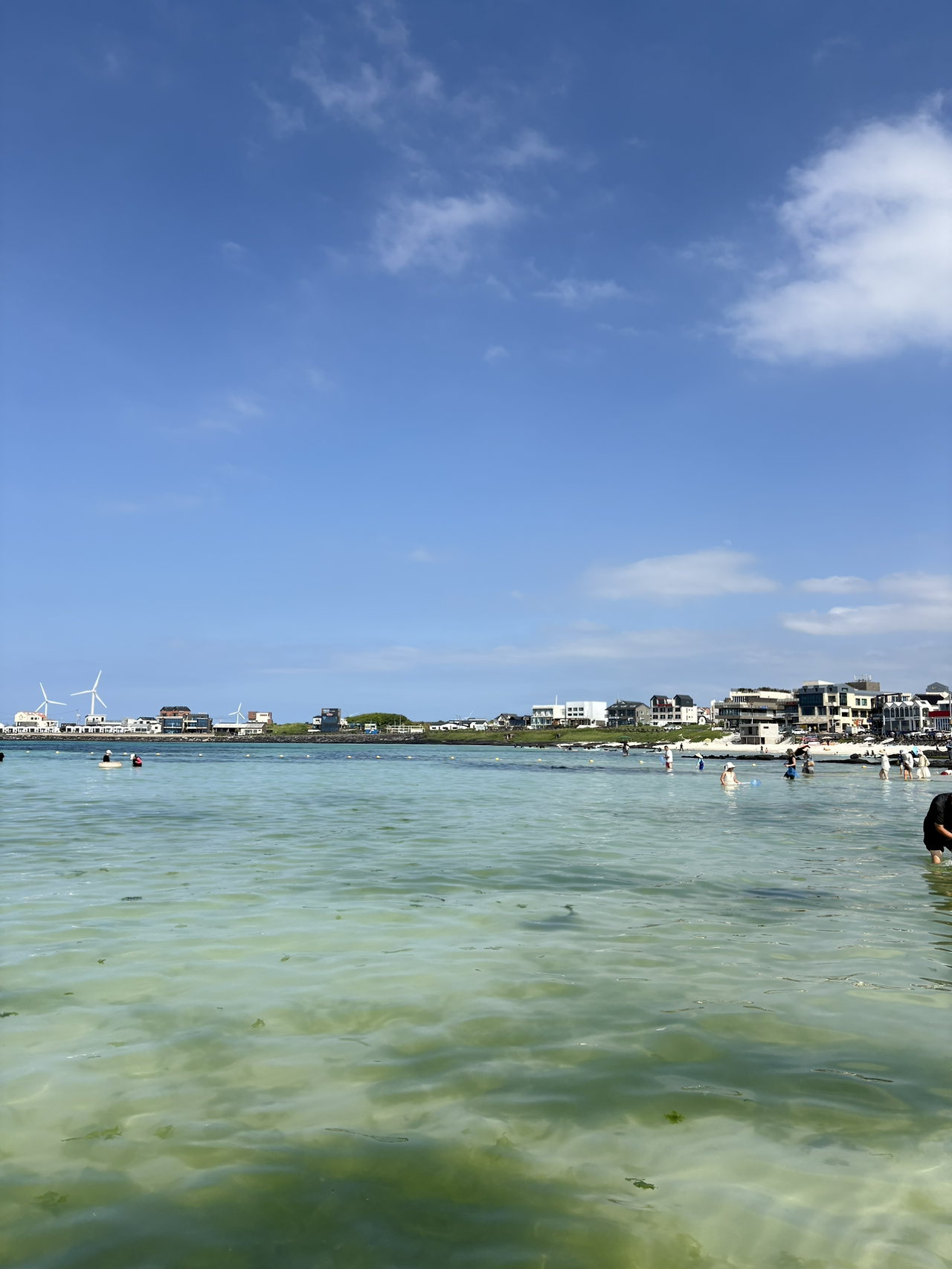 평대리에서 조금 올라가면 월정리. 파도 하나 없는 잔잔한 바다에서 서핑 연습하는 이들ㅎㅎ 물은 시원한게 지금 딱 좋다.