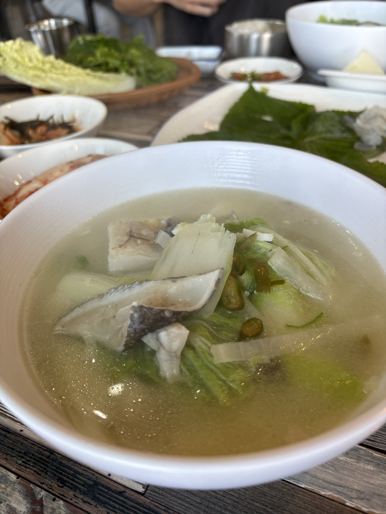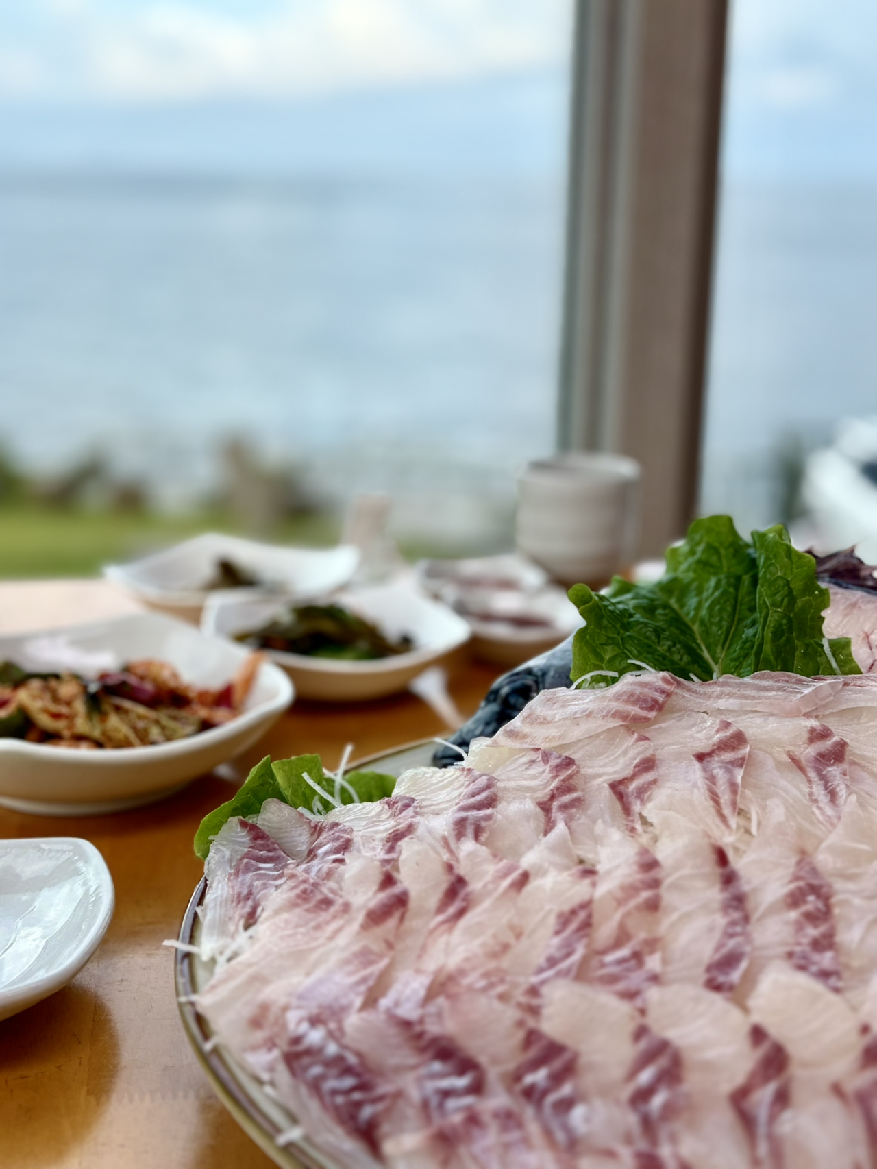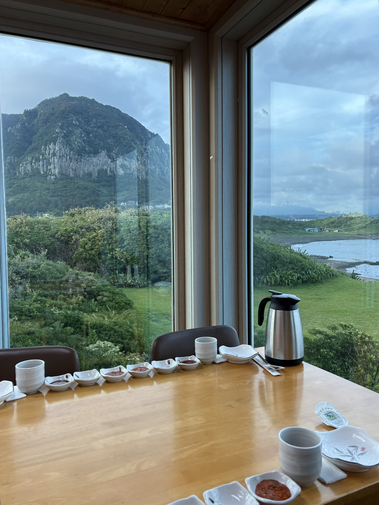 저녁은 그동안 겁나 비싸서 못가봤던 곳. 오늘 엔빵으로 우리끼리 호사를 누렸다. 산방산과 바다가 보이는 2층 방에 과거 오셨던 분들이 다들 일국의 리더. 다금바리보다 비싼 돌돔에 마지막 고등어 시래기 조림과 미역지리까지 끝내주는데 압권은 역시 풍경인 집.