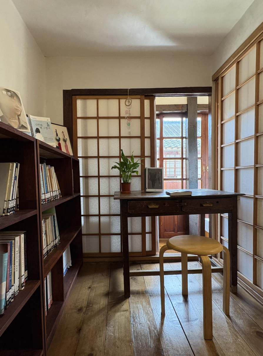 점심 먹고 어디 가볼까 검색해서 바로 걸린 책방에 삘 받아 4분 거리 #고씨주택 방문. 70년 넘은 한옥이 단정한 책방으로 변신. 주로 제주 책.