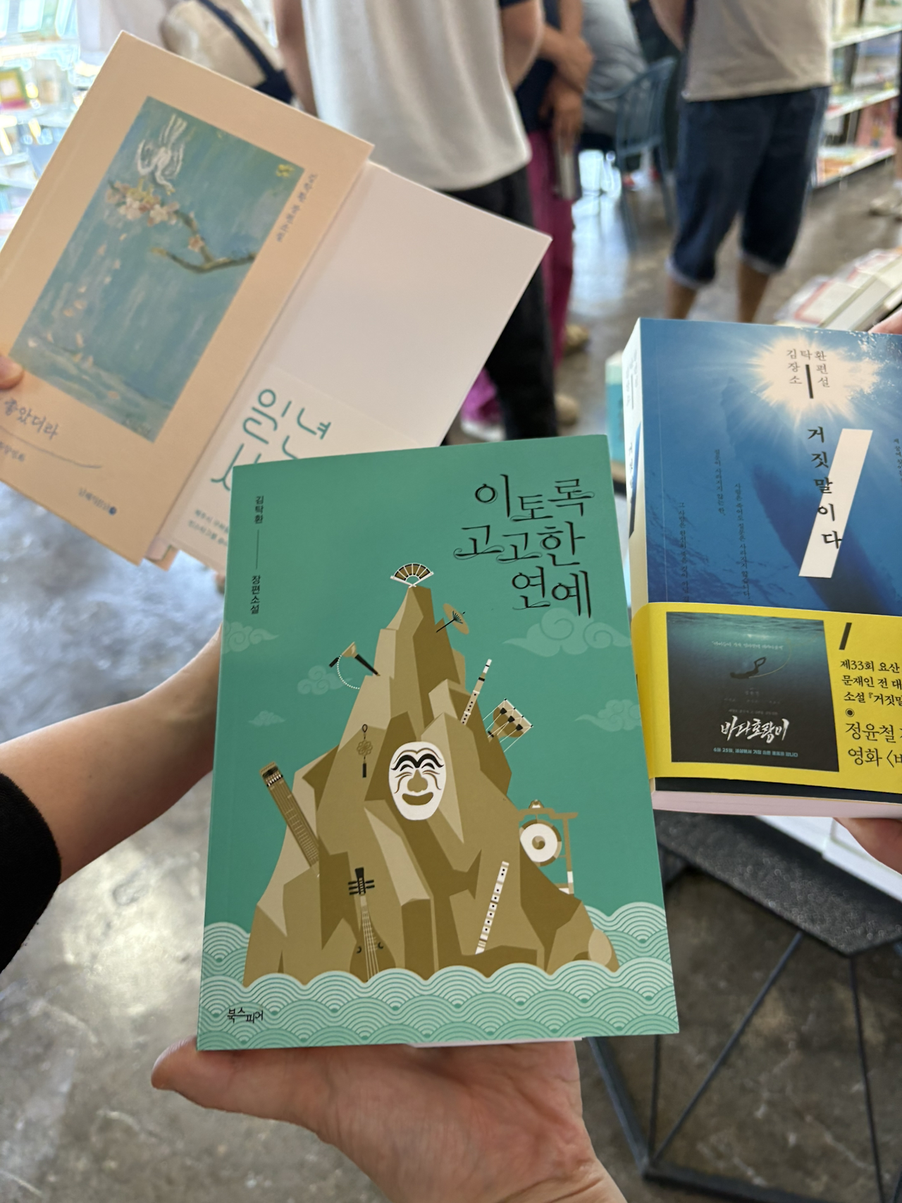 평대리 일월서가 행사에서 일행들에게 탁환쌤의 #거짓말이다 #이토록고고한연예 #참좋았더라 선물. 먼길 마다않고 함께 와준데다 진심 즐겨줬다..