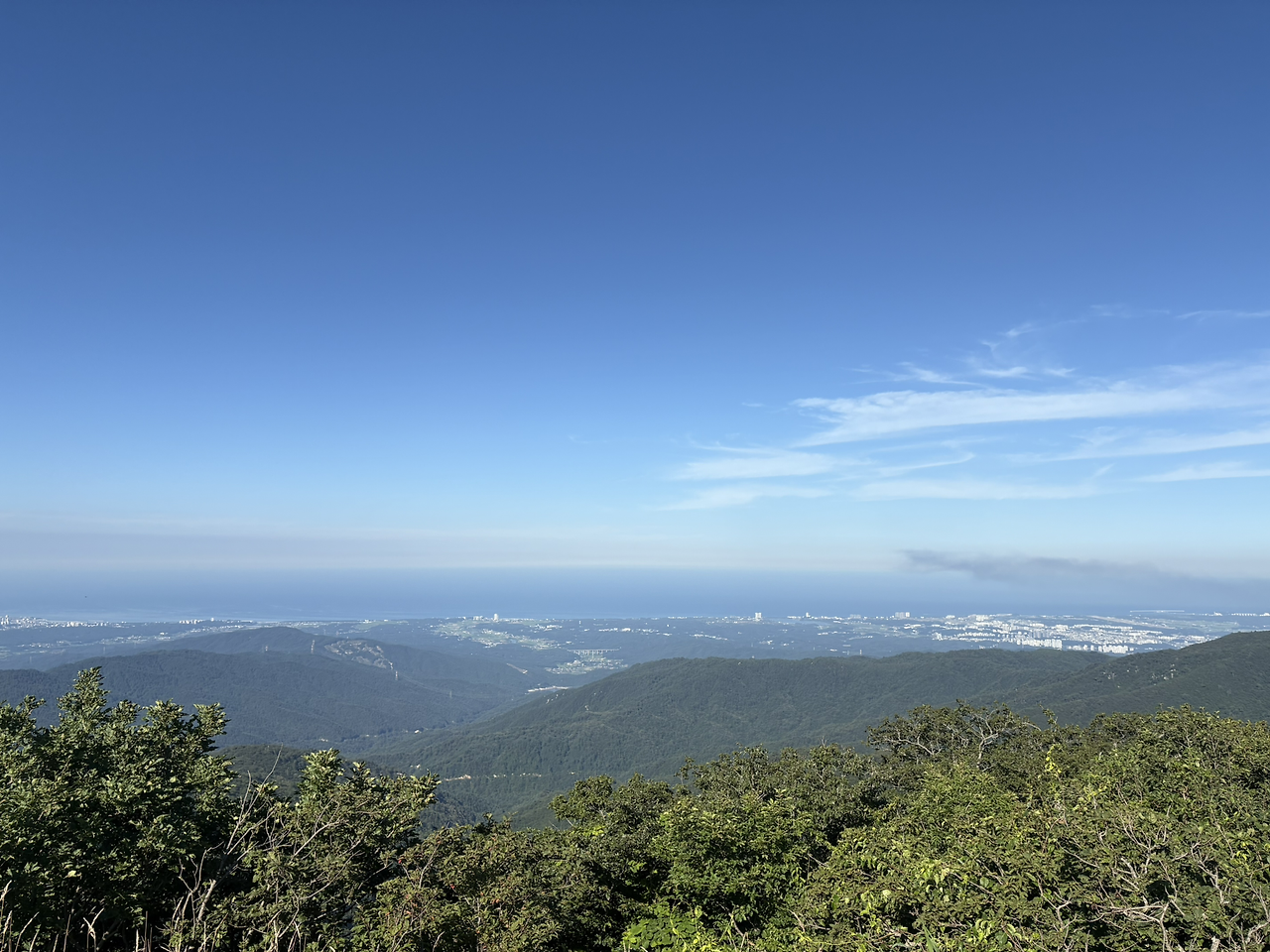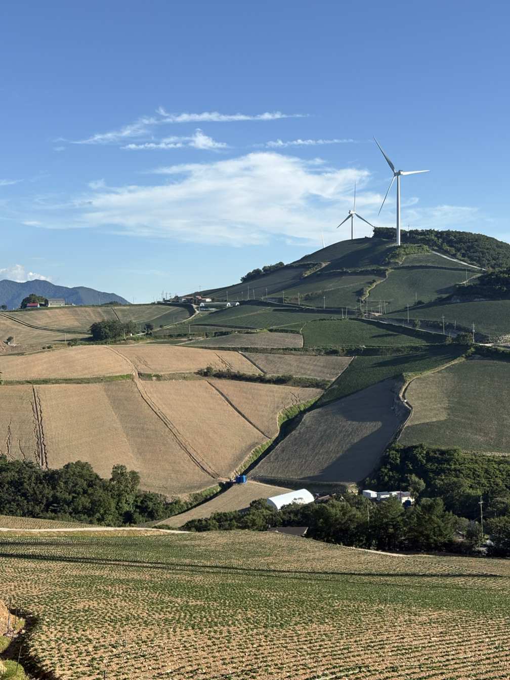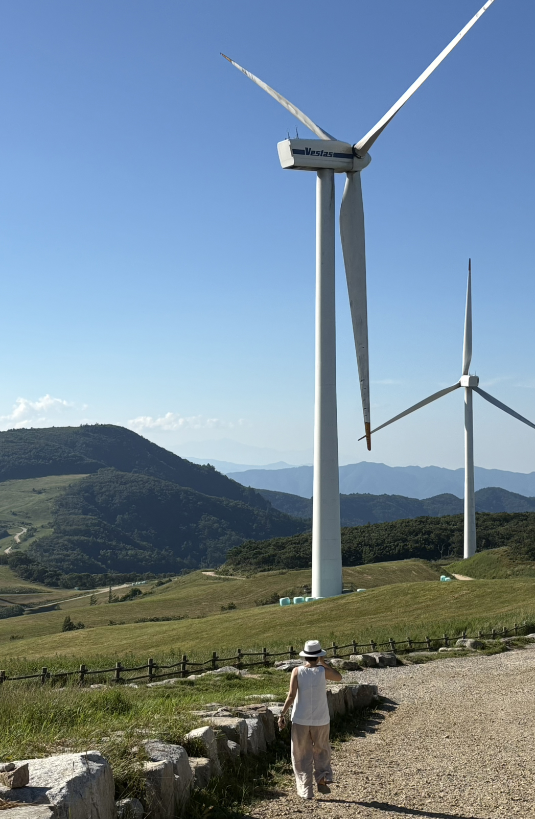 김세하 대표님 얘기에 빠져들었지만 삼양라운드힐의 비경은 해발 1100m 정상에서 만끽했다. 멀리 강릉시 너머 동해가 푸르고, 풍력 발전기 사이로 가장 멀리 흐릿하게 보이는 능선이 설악산 대청봉이다. 하늘과 맞닿아 펼쳐지는 능선, 수평선을 둘러보면 가슴이 웅장해진다. 삼양목장 김세하 대표님은 이곳을 방문한 아이들이 호연지기를 키웠으면 한다고. 호.연.지.기. 잊고 있던걸 깨워주셨다.
