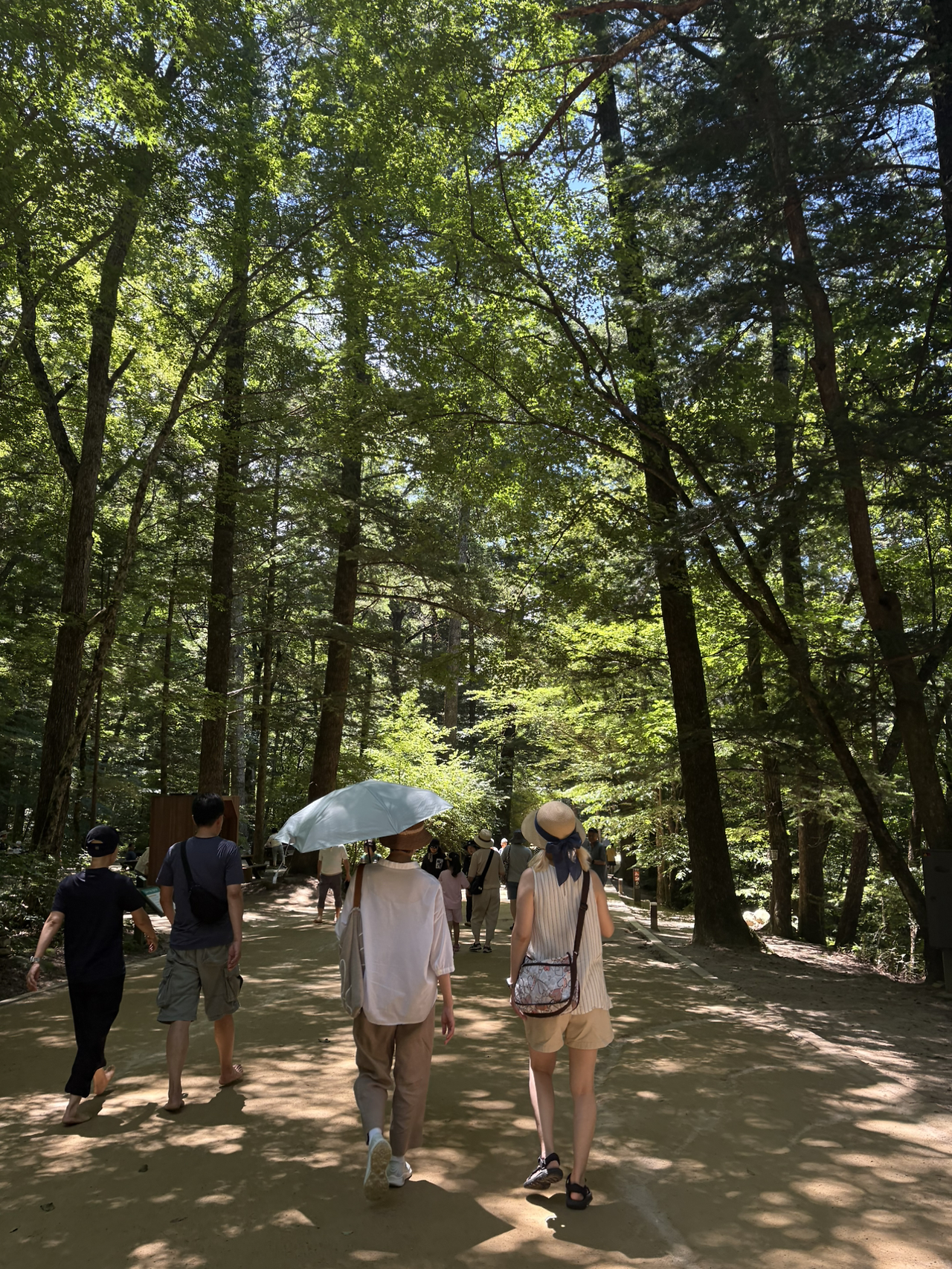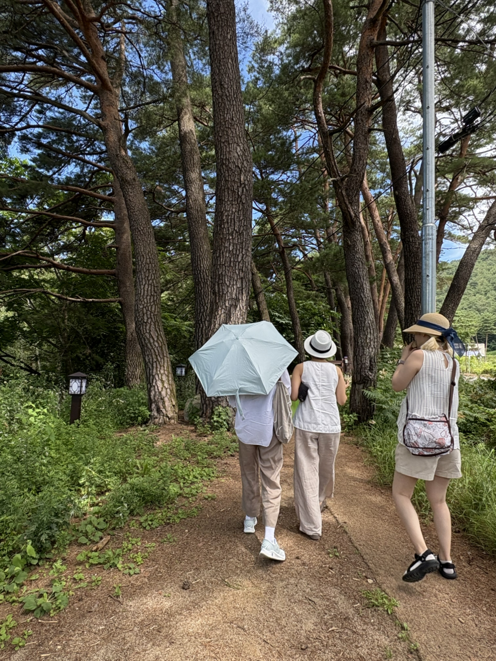 대관령 정상엔 그늘이 없지만 양산 쓰니 그럭저럭. 해발 800m 입구에서 차로 올라갔다. 걸어 내려오는 것도 괜찮겠지만 여름엔 사양ㅋ