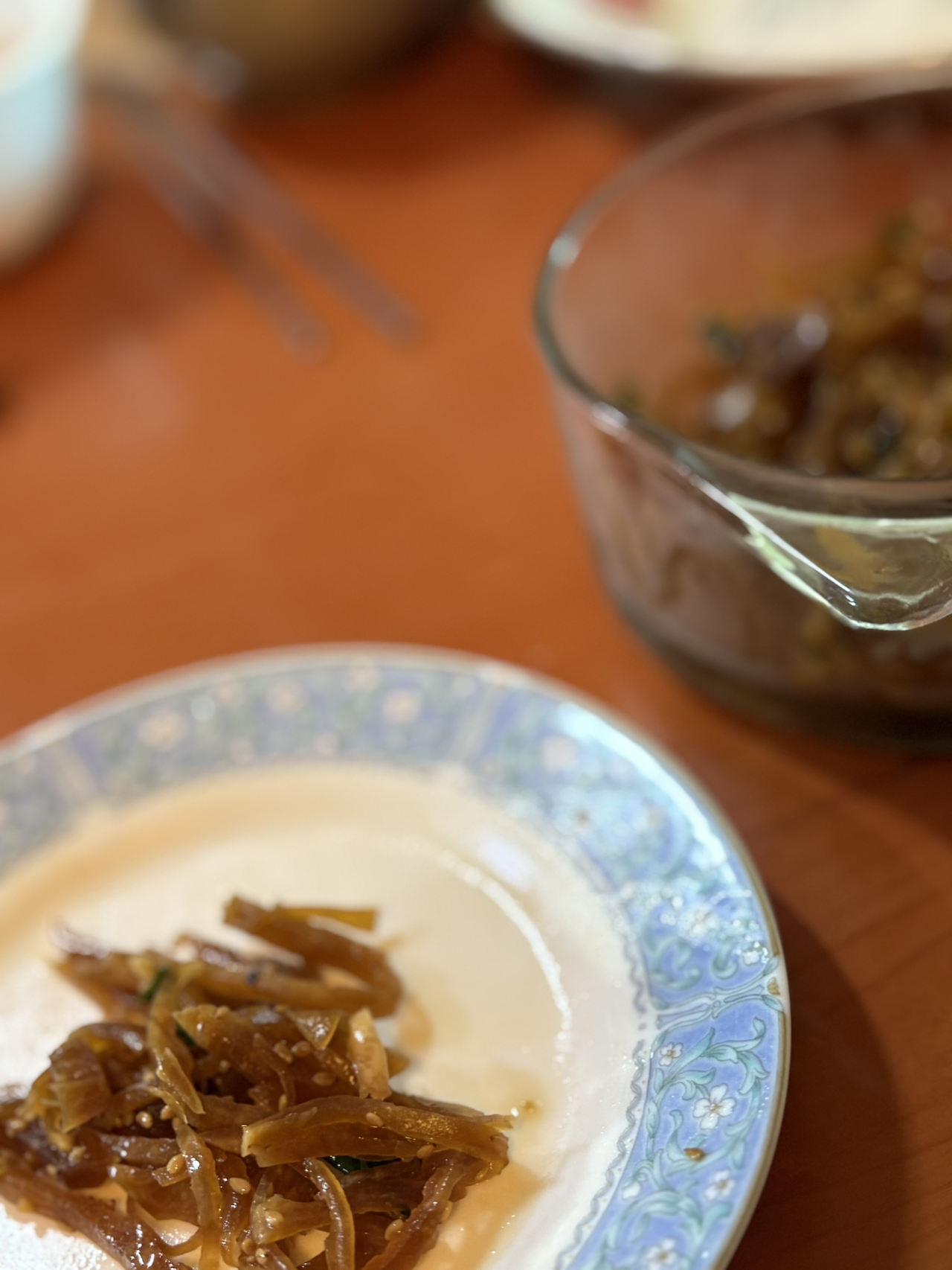 .겨울 동치미를 봄에 된장에 박아두었다가, 쫑쫑 썰어 들기름에 살짝 무친 무 짱아찌는 누룽지와 조화가 일품이다. 배부른데 안 먹을 수가 없네. 일본 나나스케보다 훨씬 맛있다. 저거 안 파시려나..