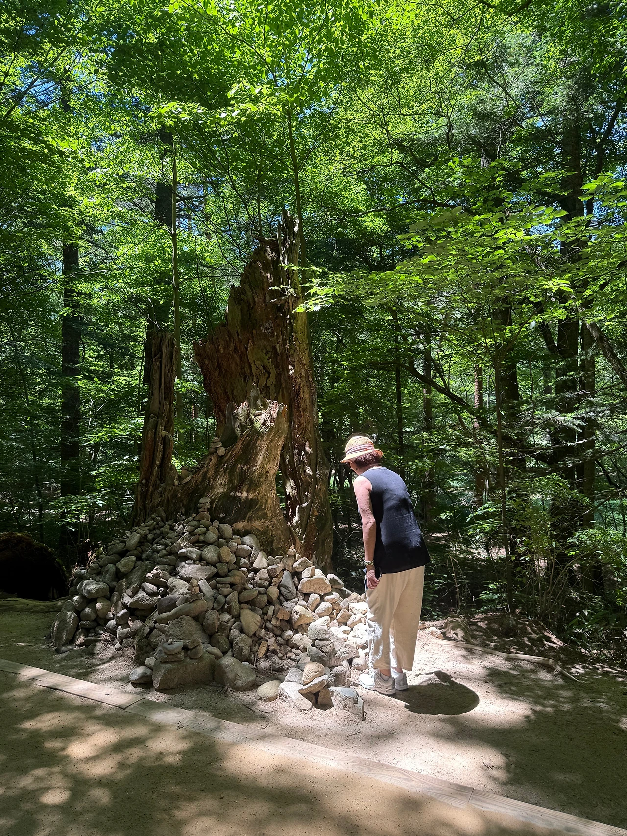 가다보면 본격 월정사 전나무 숲길. 알고보면 무슨 100대 길 꼽힌 명소다. 다람쥐라기보다 사람 안무서워 하는 강아지 같은 개람쥐가 노니는 길. 아이들이 커다란 그네 타고 노는 길. 600년 전나무가 쓰러진 자리에 돌탑 쌓고 소망을 남기는 길.