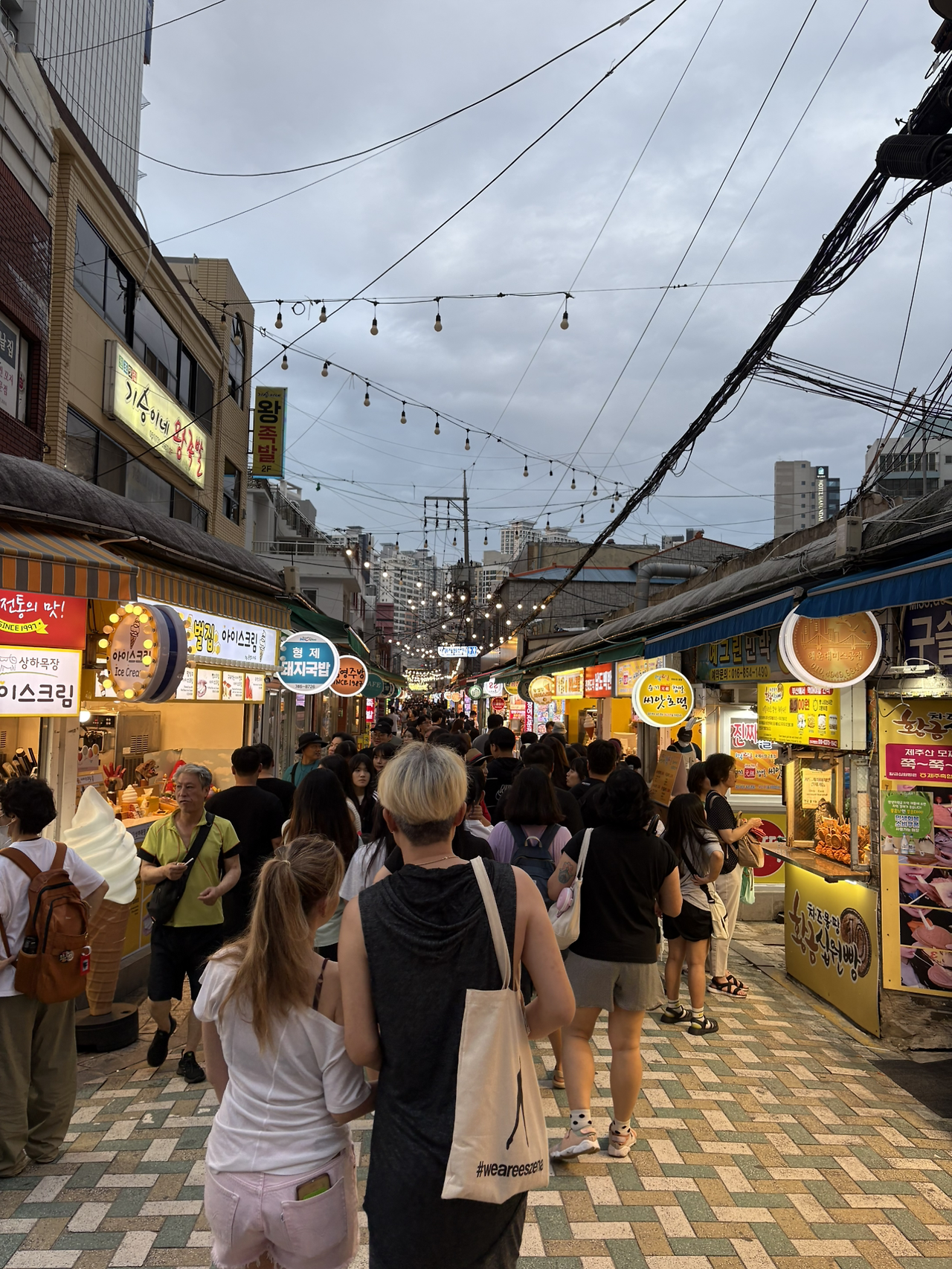 좀 걷기 위해 인근 국제시장 + 부평깡통시장으로. 비가 와도 돌아다닐만한 곳이다. 원래 일행 몇이 물떡을 먹겠다는 의지에 충만했으나 만두로 꽉 채워져 포기. 구경만 하다가 각자 어묵도 좀 사고, 10대 소녀는 일본 젤리를 좀 사고, 시장 재미란.