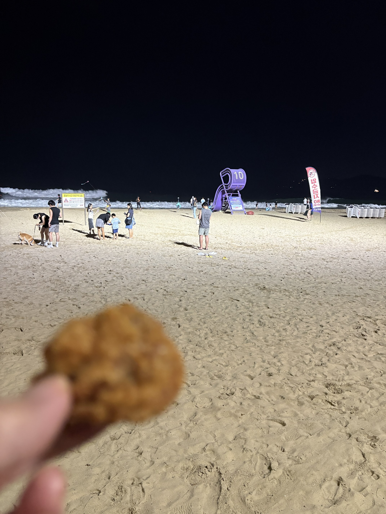 - 하지만 우리는 처음부터 2차가 중요했다. 골목의 뽀뽀통닭 치킨은 바로 튀겨주는 그맛. 작은 게 튀김과 오징어까지 챙겨서 해운대 바다로 고고. 편의점 맥주까지 세상 부러울게 없는 밤.