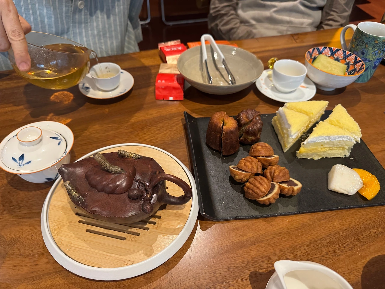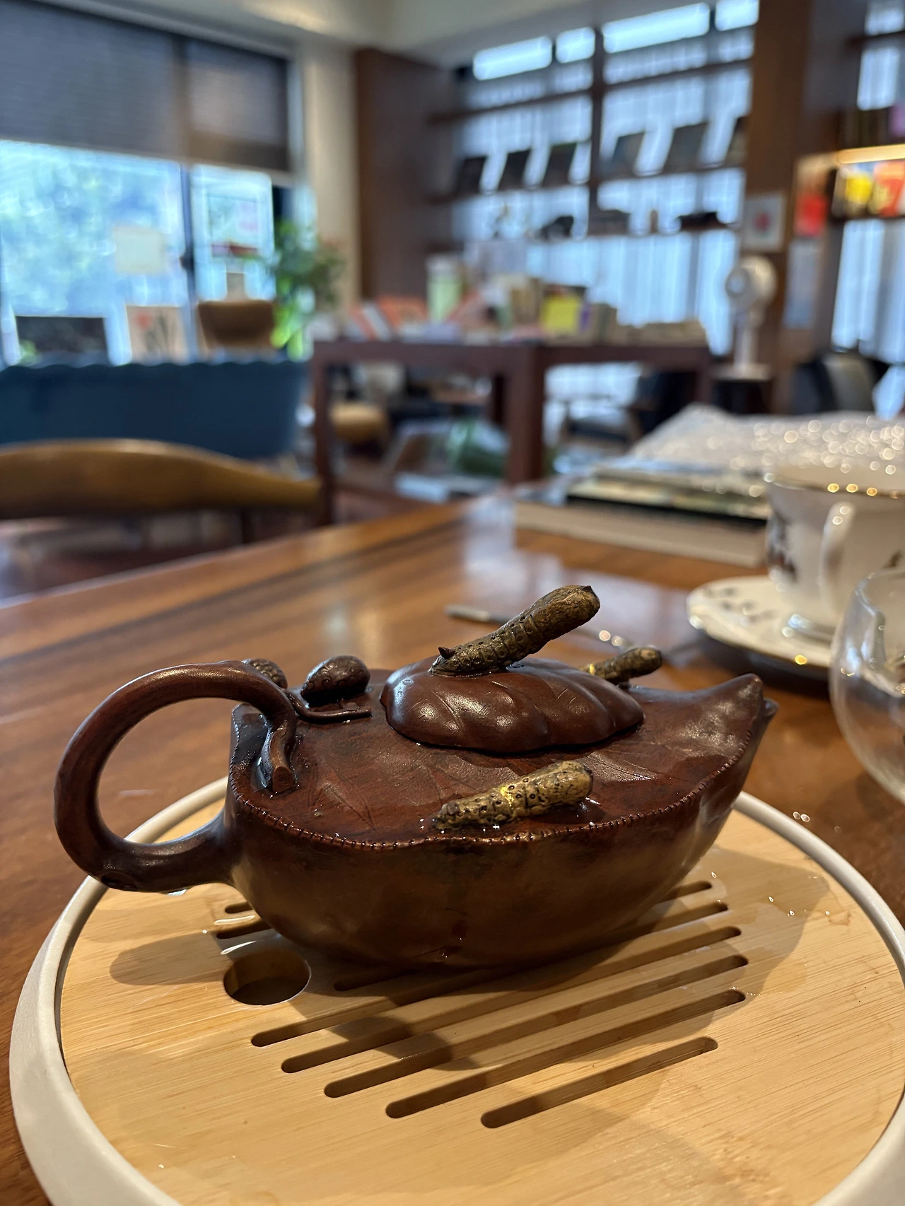 아름답지만 누에 장식이 똑 떨어진 옛 자사호의 쥔장과 도편을 이어붙이는 킨츠기 전문가를 연결해드렸더니.. 오늘 말끔해진 아이로 오티움에서 차를 마시게 됐다. 두분 다 차에 진심이라 귀한 차는 물론 다구까지 다 챙겨오심.
