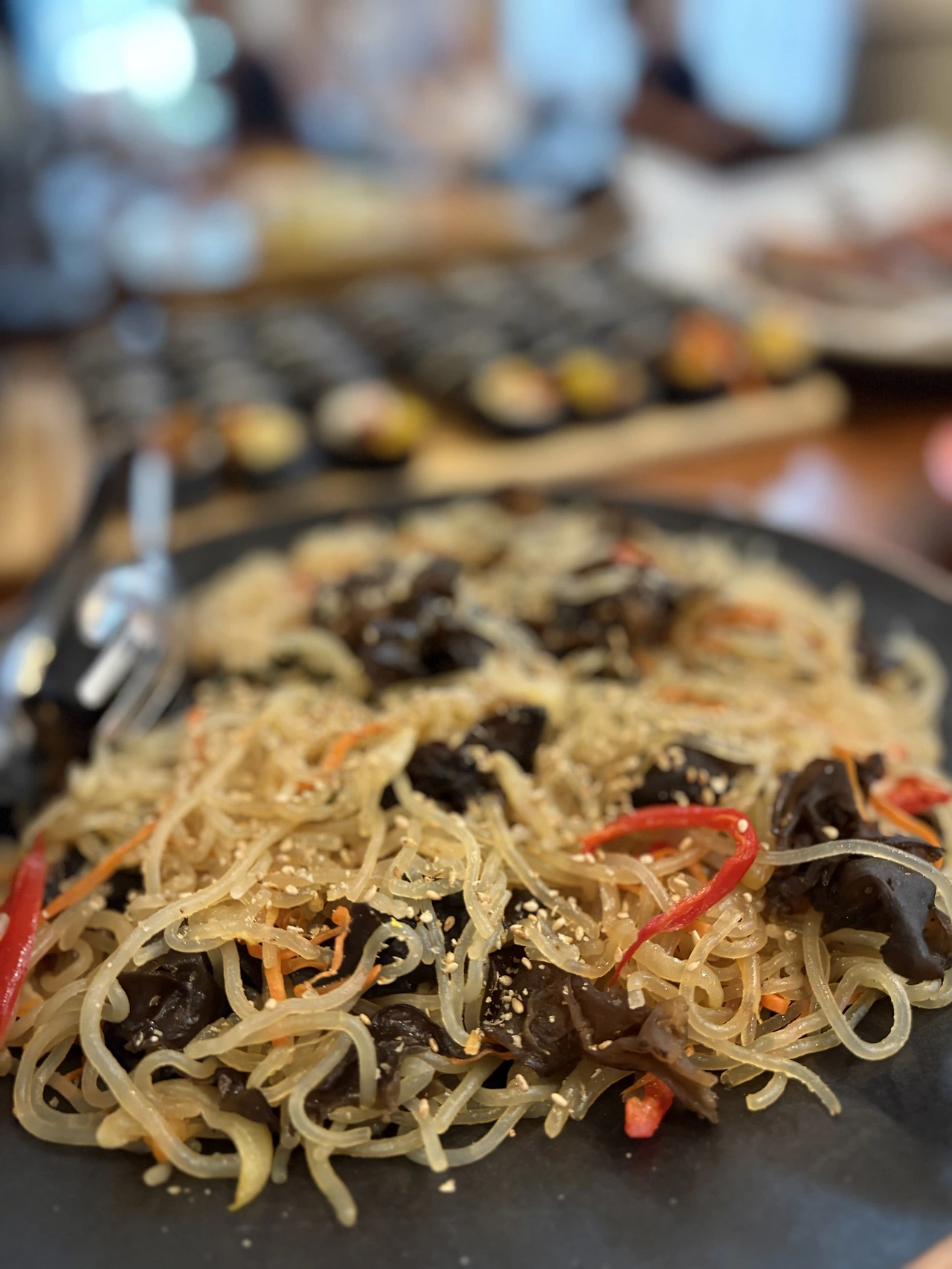 목이버섯 처음 써보는데 물에 불렸더니 미친듯이 늘어나서 좀 당황..양파 당근 파프리카 시금치 더해서 잡채 완성. 원래 손이 큰데 진짜 많이 했다...