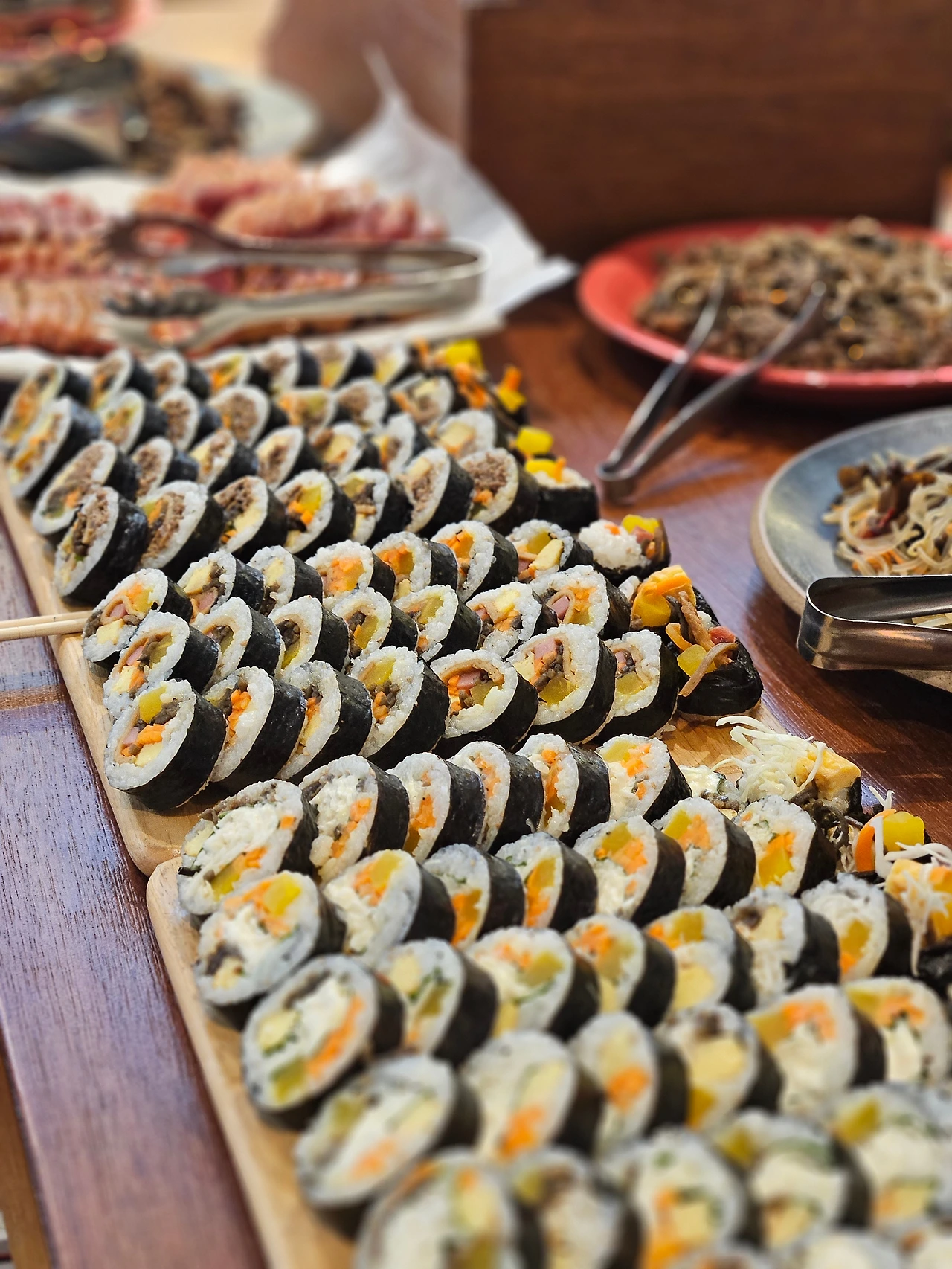 불고기와 바베큐삼겹살을 제외하면 모두 채식주의자를 위한 메뉴. 김밥도 5종 주문하면서 샐러드김밥을 각별히 챙겼다.