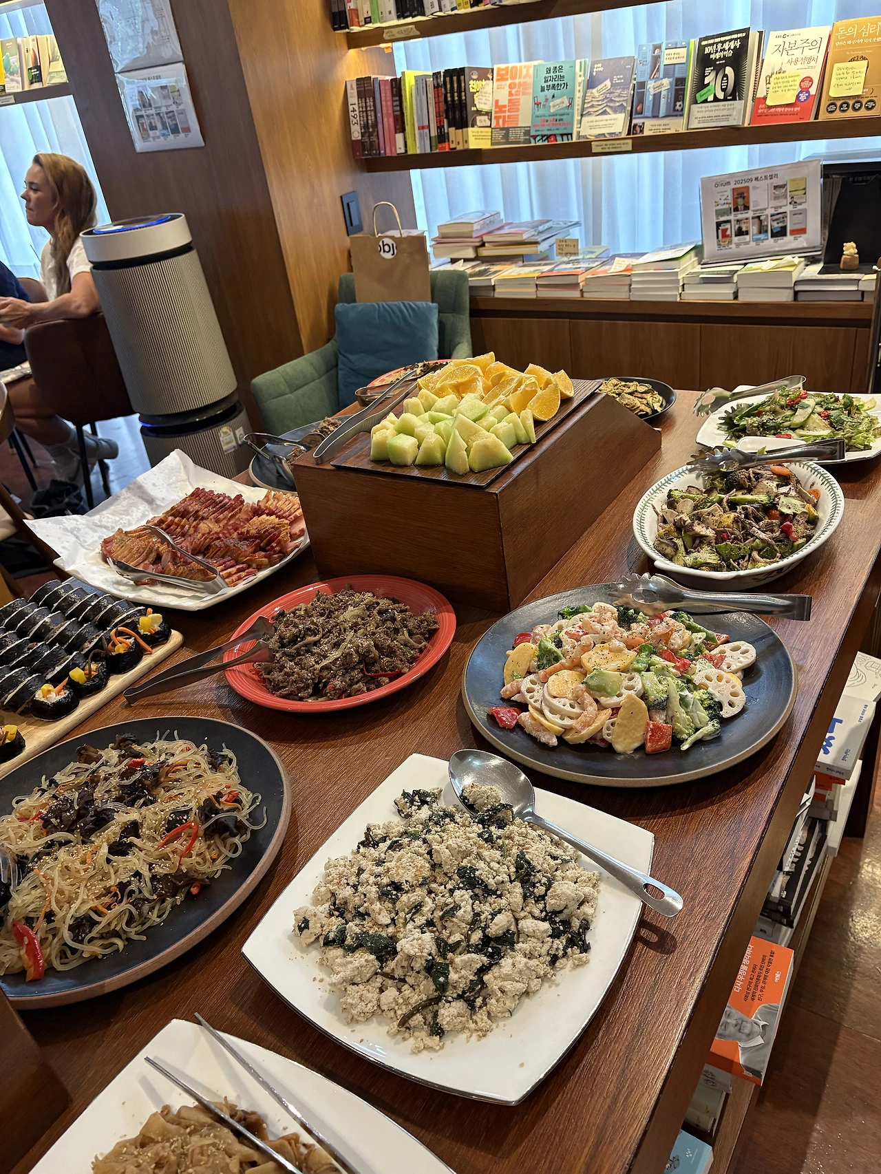노르웨이와 일본 중국에서 온 학생들과 세미나 후 점심 먹는 행사를 J교수님이 예약하셨다. 뷔페 음식 몇번 주문해봤는데 내 입맛에 쏘쏘. 요즘 외국인들은 김밥, 잡채, 불고기면 통한다는 말을 믿고 직접 해보겠노라 했다. 그런데 10여명이 비건이란다. 흠..