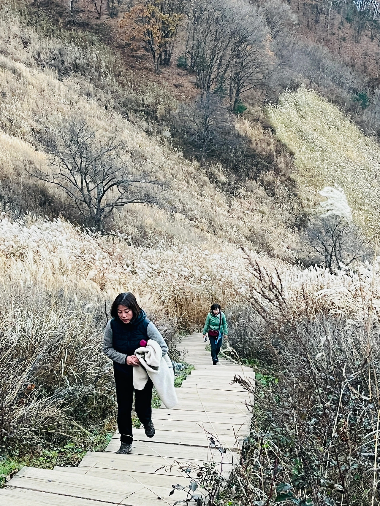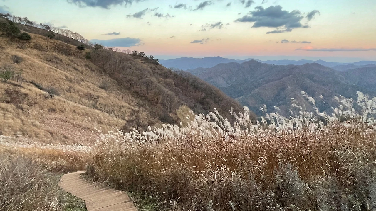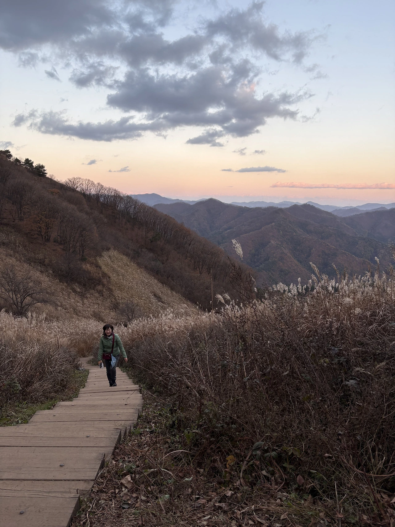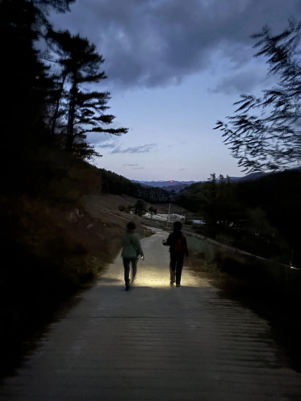 민둥산은 보통명사인줄 알았는데 여긴 산 이름. 억새가 가득 펼쳐지는데 왜 민둥산이라 부르는지 모르겠다. 땅거미가 지는데 달이 뜨고 어둑어둑한 개와 늑대의 시간. 억새 너머 굽이굽이 능선이 놀랍도록 선명했다. 그래도 올라오기를 잘했지 싶은 절경. 내려오는 길 막판엔 달빛과 스마트폰 랜턴의 도움을 받았다. 평생 겪어보지 못한 밤 산길. 실컷 웃었다.