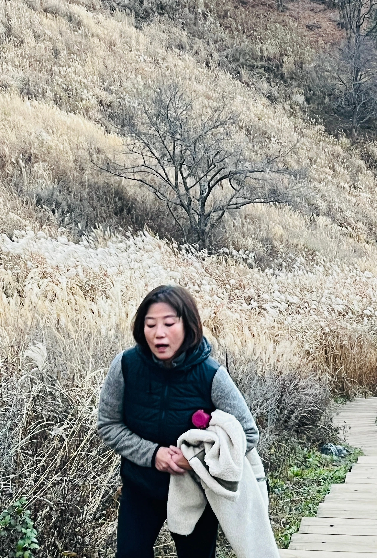 느긋하게 놀다보니 시간이 애매했지만 욕심껏 민둥산 고고. 5시35분에 해가 진다는데 4시55분에 도착해서 지름길로 미친듯이 올라갔다. 산악인 두분이 앞뒤에서 압박해주는 덕분에 거의 숨넘어가기 직전에 40분 만에 정상. 기진맥진 쓰러질듯한 내 모습은 사진으로 남았고...