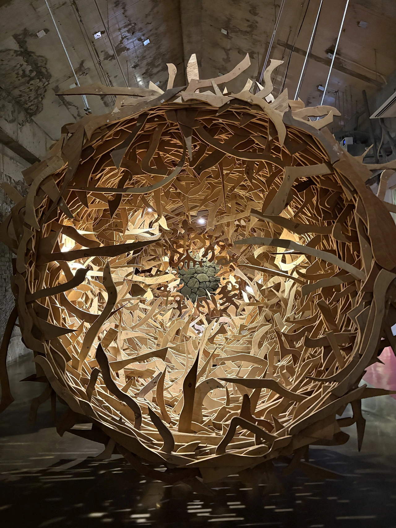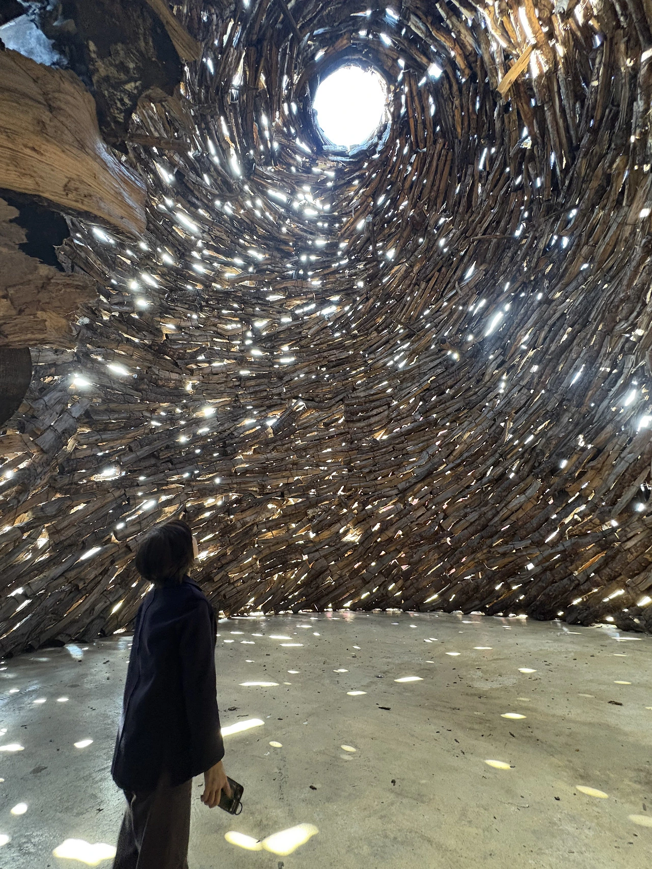 꽃길도 멋지지만 재활용 나무조각을 모은 ’우주탐험‘도 세상의 오묘함을 구축했다.