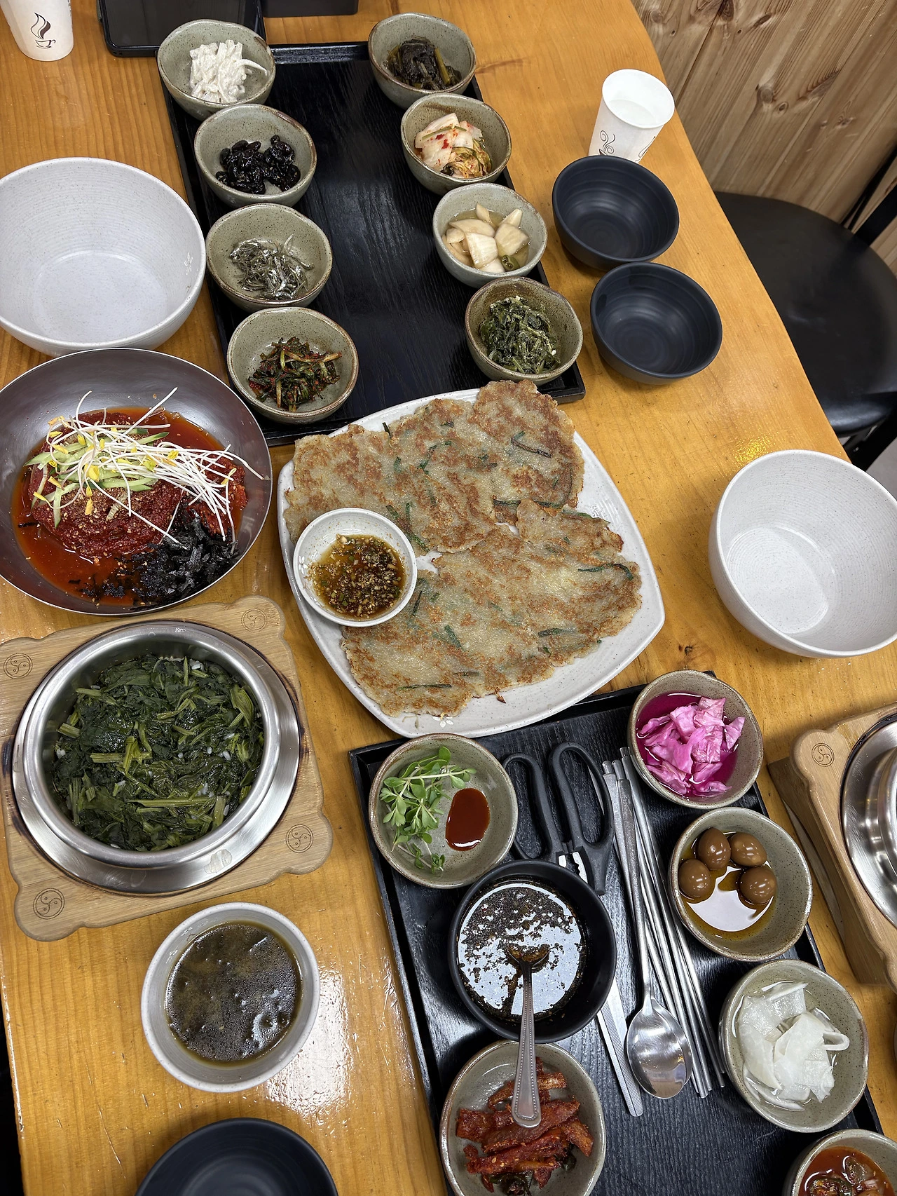 정선 #메밀촌막국수 곤드레솥밥 맛집이다. 반찬만 14가지. 막국수와 감자전 곁들이니 만찬이다. 민둥산 등반 후 진이 빠졌던 몸이 든든하고 따뜻해지는 마법의 밥상이다.