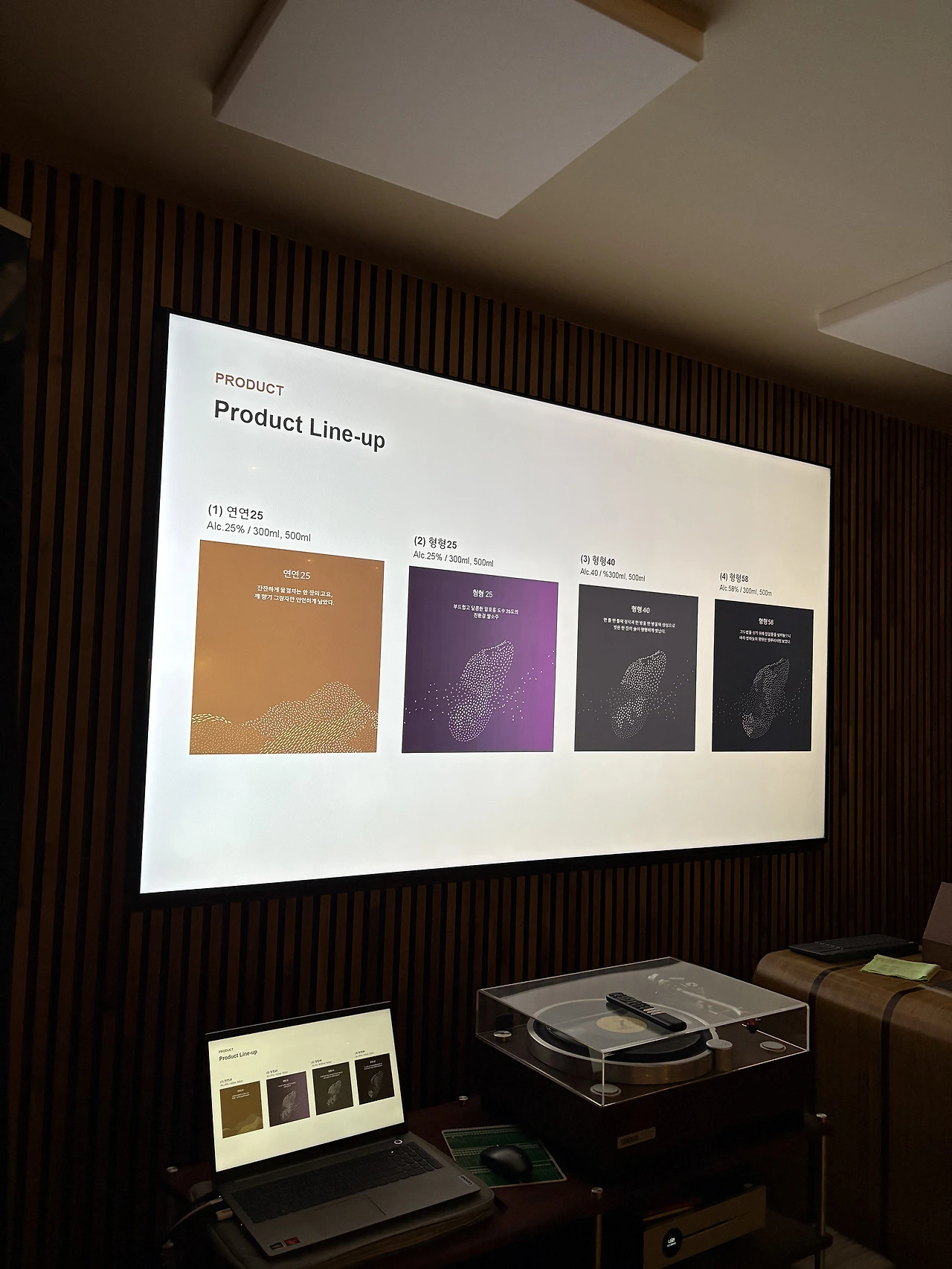 오규섭 온증류소 대표님의 '형형' 시리즈는 이렇게 탄생했어요. 25도, 40도, 58도. 25도에 참깨 향을 가미한 '연연'도 독특하죠?