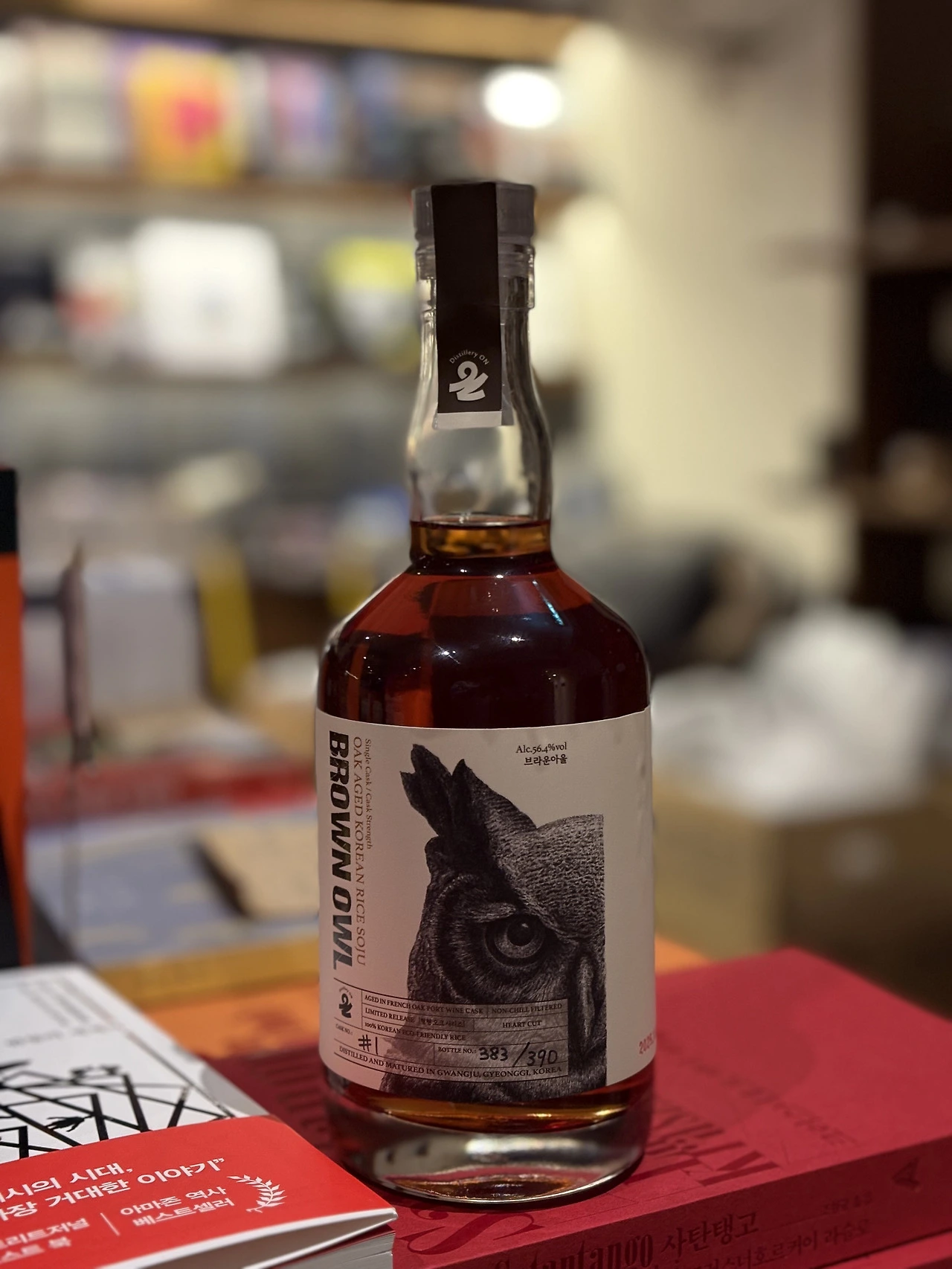 쌀을 원료로 하면 위스키라고 부를 수 없지만, '브라운 아울'은 오크통에서 세번의 여름을 보냈습니다. 23년 봄에 통에 넣어 지난달 병으로 옮겨담았고요. 모레 360병을 출시합니다.
