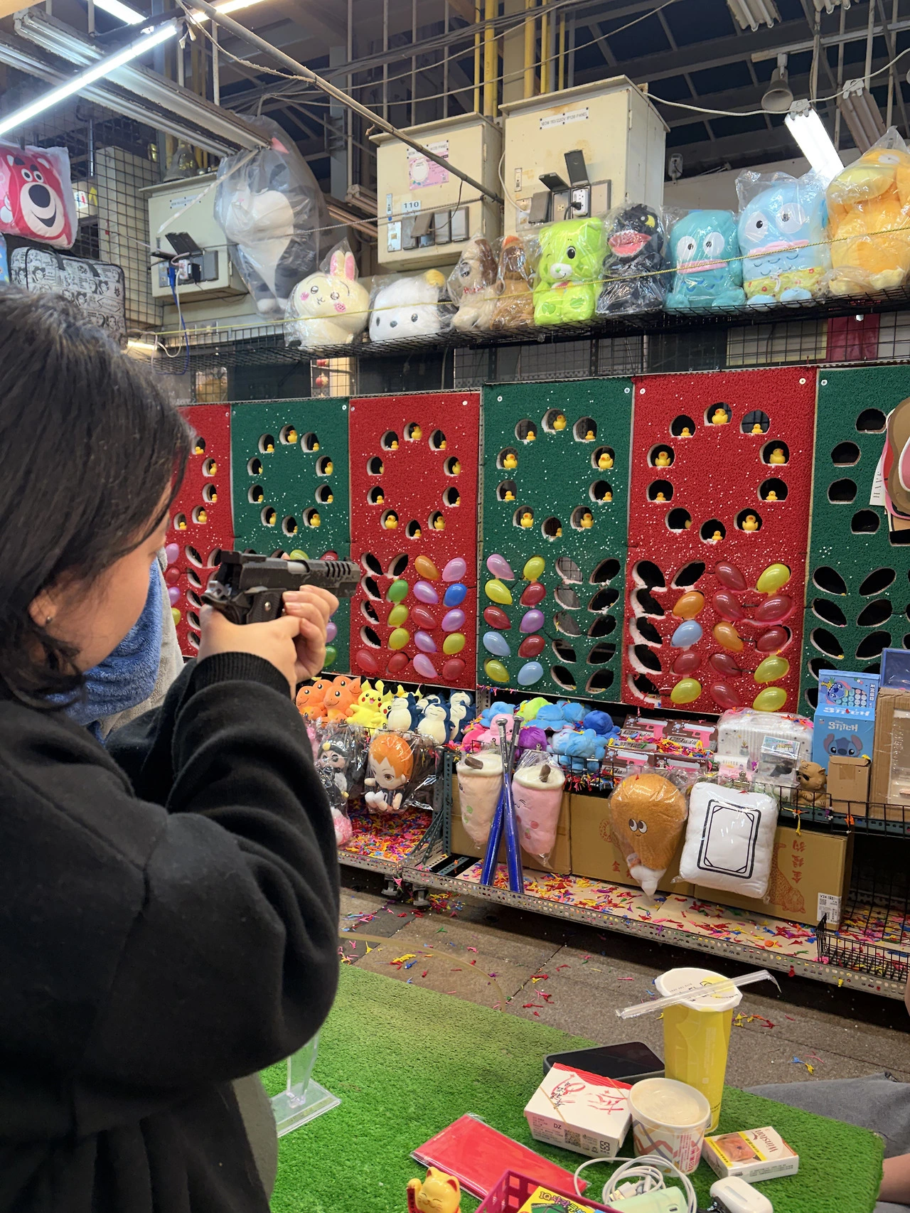 딸은 명사수. 10발 중 8발 맞췄다. 상품 인형들 와중에 저 징글맞은 아이들은 뭐람.