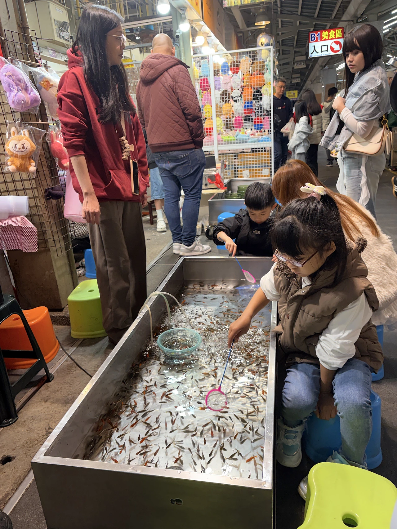 스린 야시장에는 애들 놀거리 천지. 저 작은 물고기를 잡아서 뭐한담.
