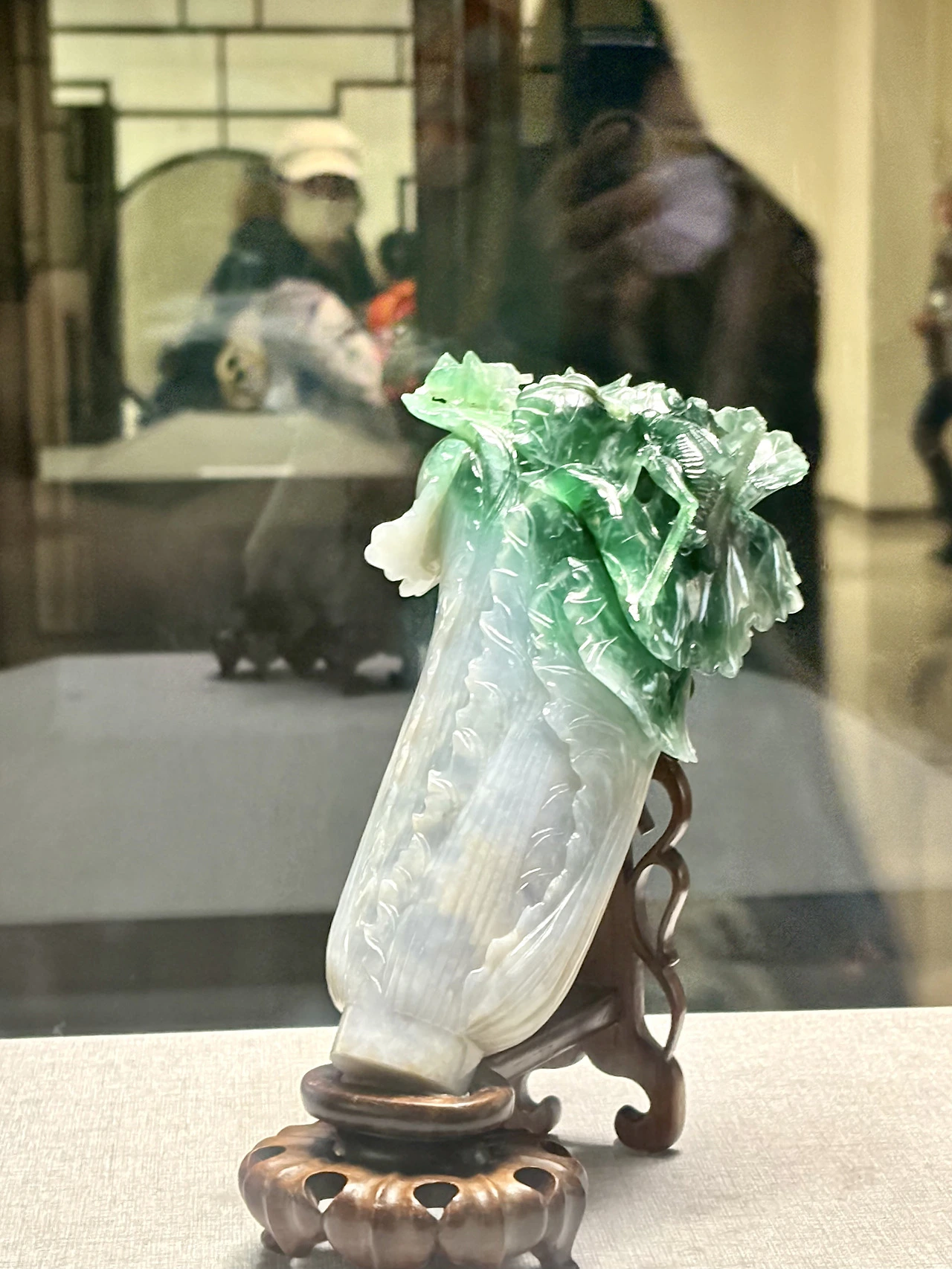 그 유명하다는 옥배추, 취옥백채(翠玉白菜). 하얗게 빛나다가 초록색으로 바뀌는 원석을 그대로 살려 배추에 여치와 메뚜기까지, 경이롭다. 서태후 며느리가 되는 딸을 걱정한 어느 아빠가 혼수로 의뢰한 작품이라고. . 옥배추와 쌍벽을 이루는 동파육 육형석(肉形石)은 박물원 남부 분원에 있다고.