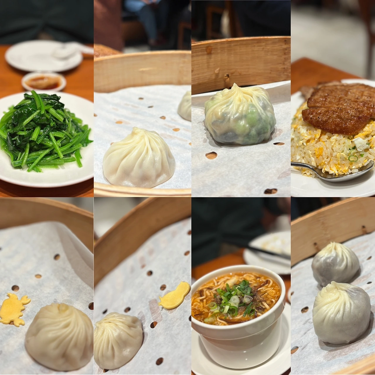 오늘 목표는 딘타이펑 오픈런. 10시30분 맞춰갔더니 이미 줄이 어마어마. 마침 남서점은 10시50분 오픈으로 우리는 간신히 제때 입장했다. 사실 무려 11만원을 들여 2인 식사권을 1월에 미리 구입했는데, 날짜를 1월로 입력하는 바람에 날린 줄... 바우처 유효기간을 들이밀어볼까 했는데 별 문제 없이 쓸 수 있었다. 게와 닭 소품 표시 귀엽고, 트러플 샤롱바오 풍미 훌륭. 야채와 버섯 샤롱바오가 식감도 향도 좋았다. 가성비 꽝이지만 보통 2시간 줄선다는데 30분 대기로 줄여주는 값이다. 십수년만의 모녀여행에 뭘 아끼겠나. 그래도 두번은 안갈듯