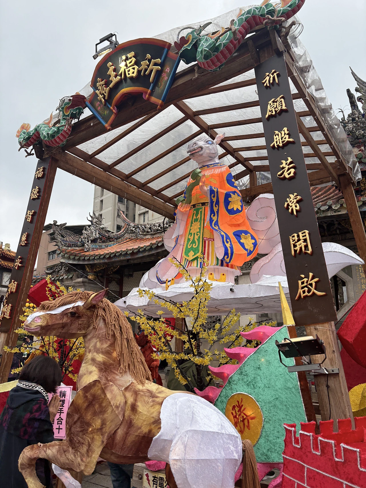종이 말 장식 사이로 기도하는 사람들 틈에서 같이 순례 모드.
