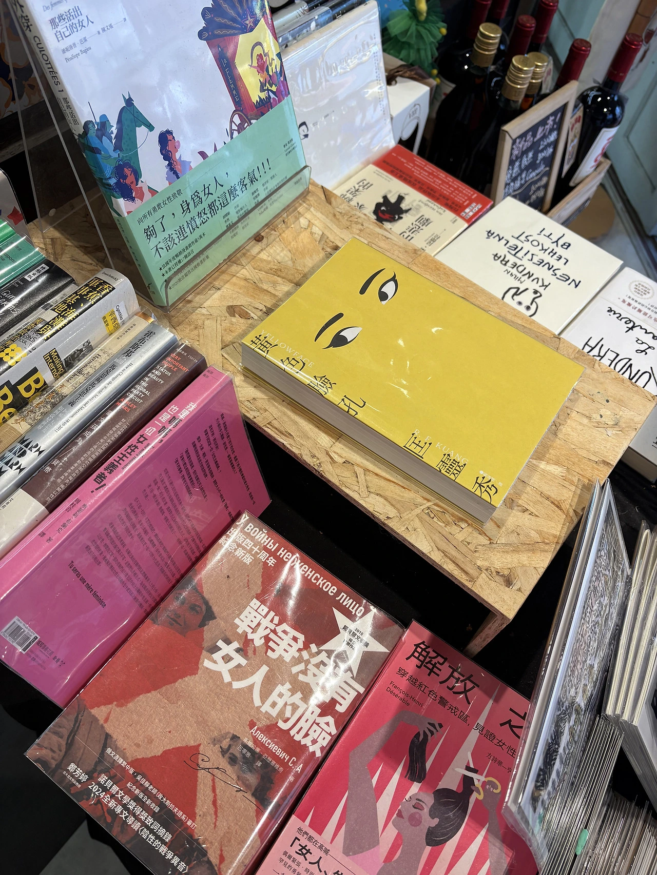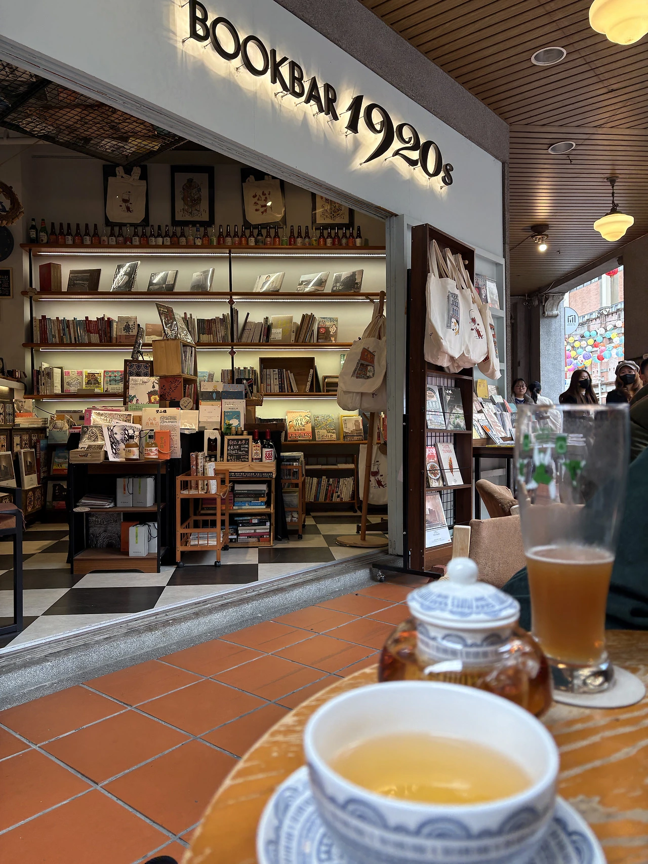 평점 좋은 카페들은 웨이팅 있고, 운좋게 북바1920 야외석에 자리를 잡았다. 나는 동방미인차, 딸은 피치우롱맛 병맥? 술과 차 파는 책방 반갑다! 본인들이 대만 문화의 영적 허브라고 홍보하는데, 한국 작가 송유정이 <기억 서점> 번역본과 내가 요즘 열심히 팔던 R.F.쿠앙의 <옐로페이스> 번역본이 눈에 띈다.