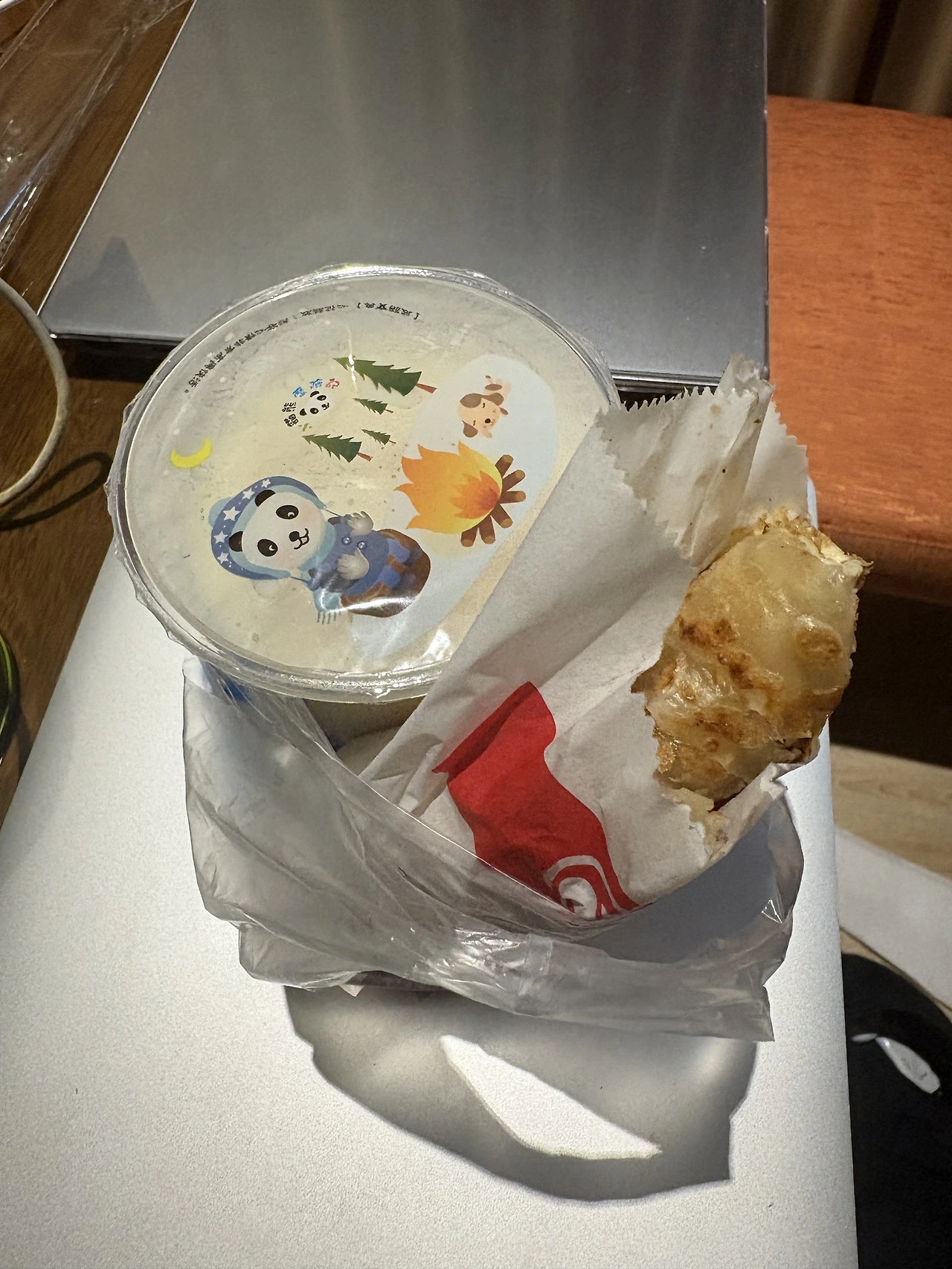타이베이의 평범한 아침 총좌빙(파전병)과 두유. 숙소 부근에서 테이크아웃 정성을 보였지만 아침을 거르는 딸은 거부. 기름과 밀가루, 계란, 치즈의 맛이다.