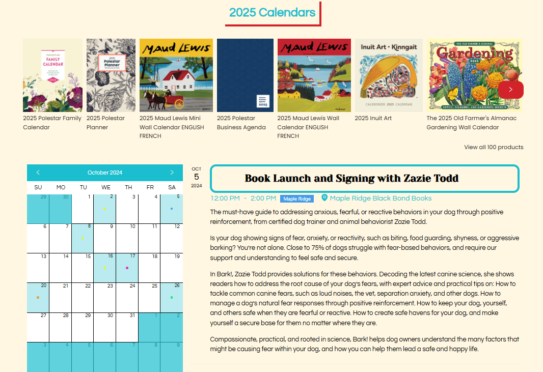 집에 돌아와 서점에 대한 정보를 찾아보았다. 몇 군데 지점을 둔 독립서점이다. 출간기념 저자 사인회도 하고 저녁시간에 시와 독서에 관한 이벤트들이 있다. 캘린더에서 매달 있는 행사를 한눈에 볼 수 있게 해 두었다.