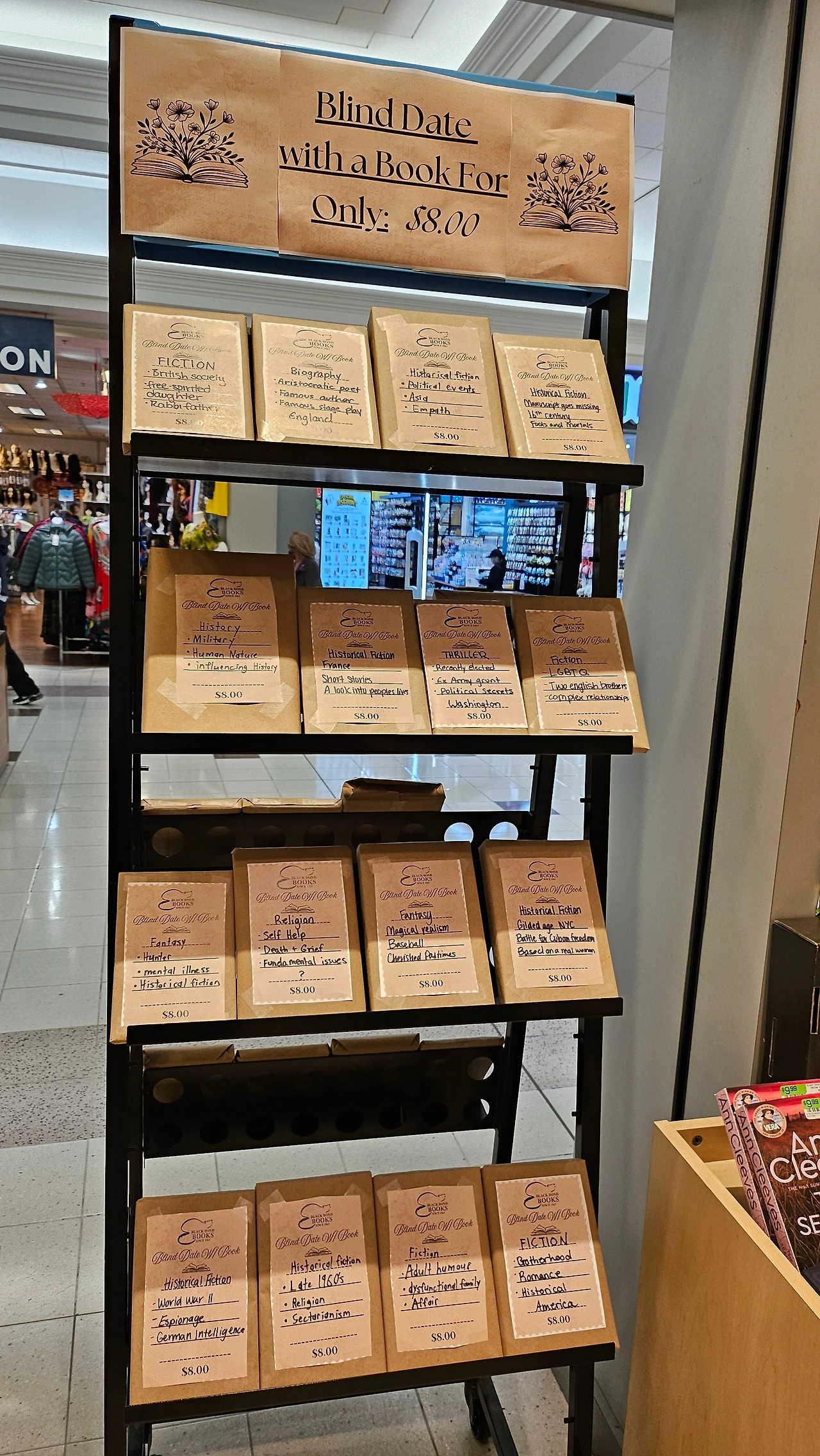 돌아 나오는 길에 입구 쪽에 세워진 '블라인드 데이트' 코너가 보인다. 블라인드 데이트는 보통 '소개팅'이나 '맞선'이라는 뜻인데 단지 8불이면 된다는 <Blind Date with a Book For Only $8>라는 제목과 시도가 흥미롭다. 분야와 어떤 내용일지에 대한 간단한 소개만을 적어둔 채 책의 제목과 저자는 포장에 가려져있다.영주가 정성스레 적었을 듯한 표지글. 정서가 표지글을 쓰는 영주 옆에서 뜨개질을 했을 것 같고 민철이가 턱을 괴고 앉아 바라보았을 것 같다.
