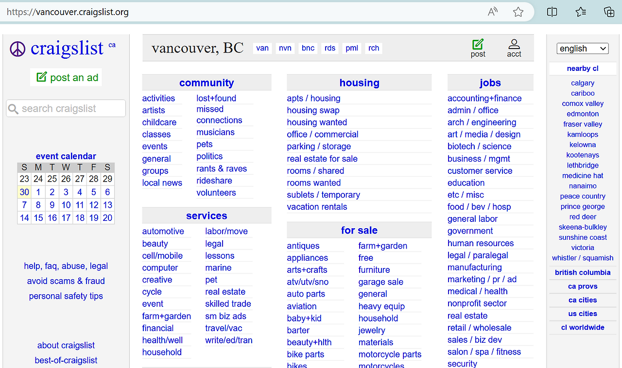 캐나다에서 가장 활성화된 부동산과 중고물품 거래 온라인 플랫폼 크렉스리스트